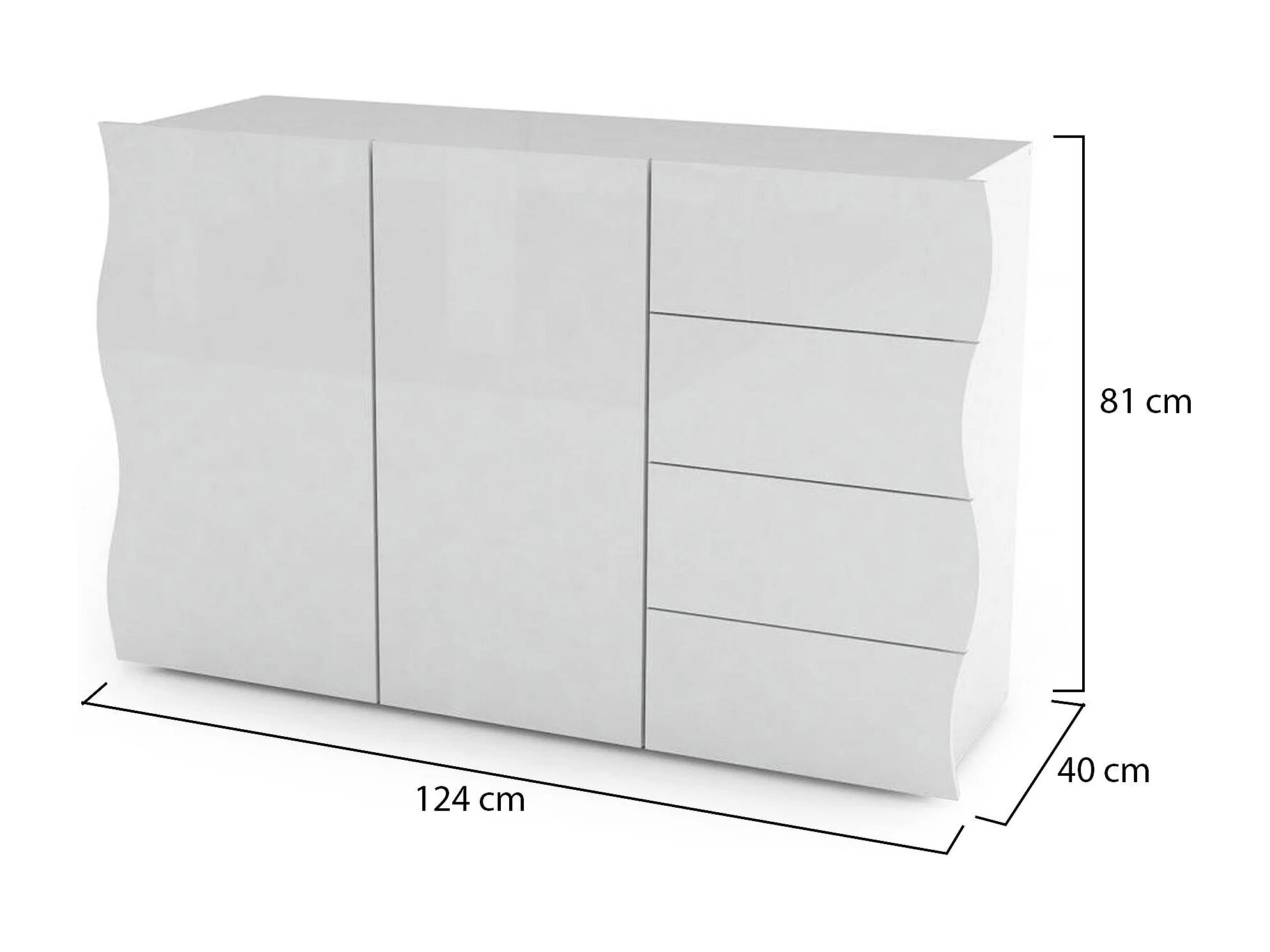 Buffet Romolo, Buffet de cuisine avec 2 portes et 4 tiroirs, Buffet de salon, 100% Made in Italy, 124x40h81 cm, Blanc brillant