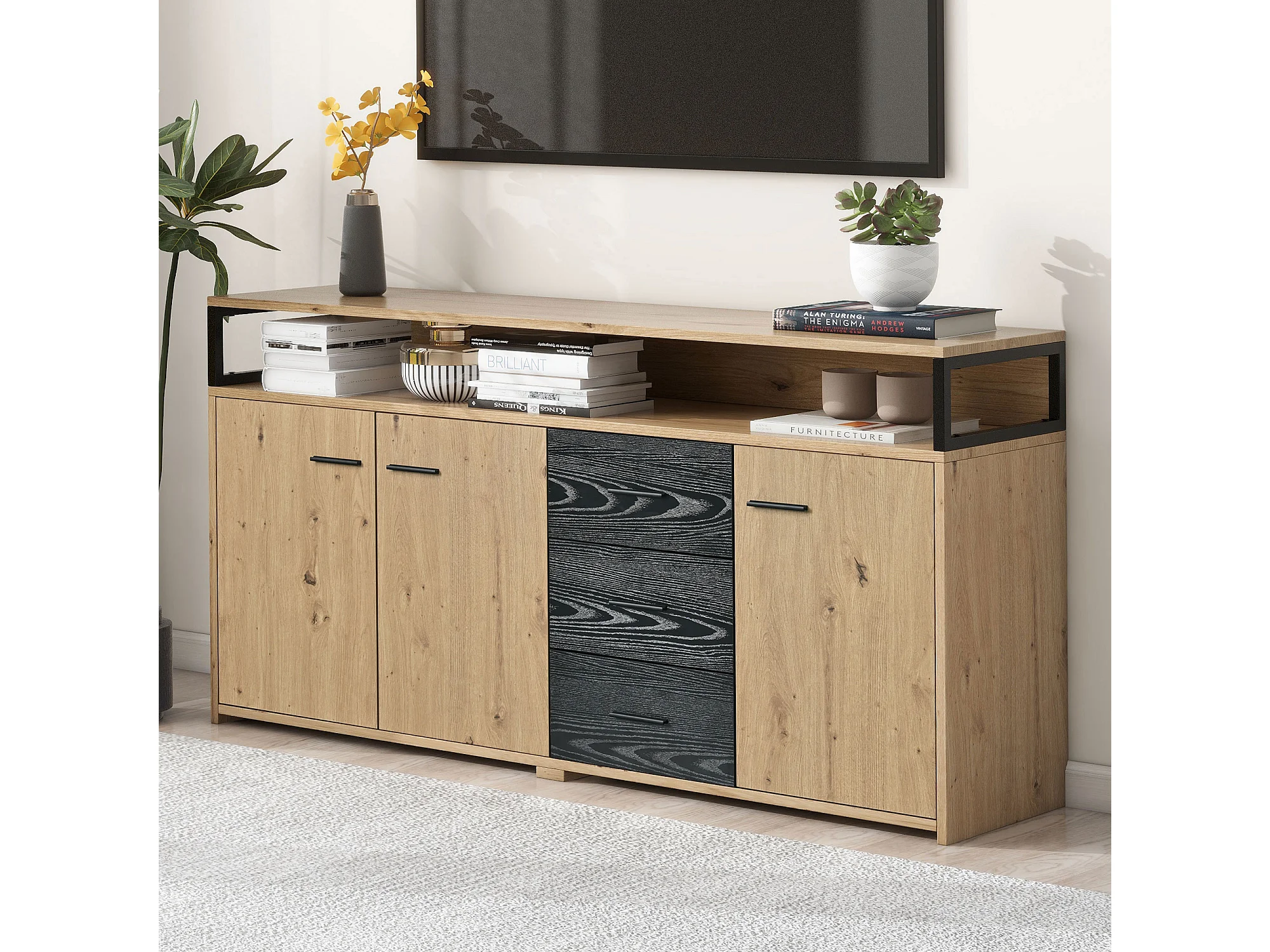 Buffet bois d'acacia naturel et noir plus métal