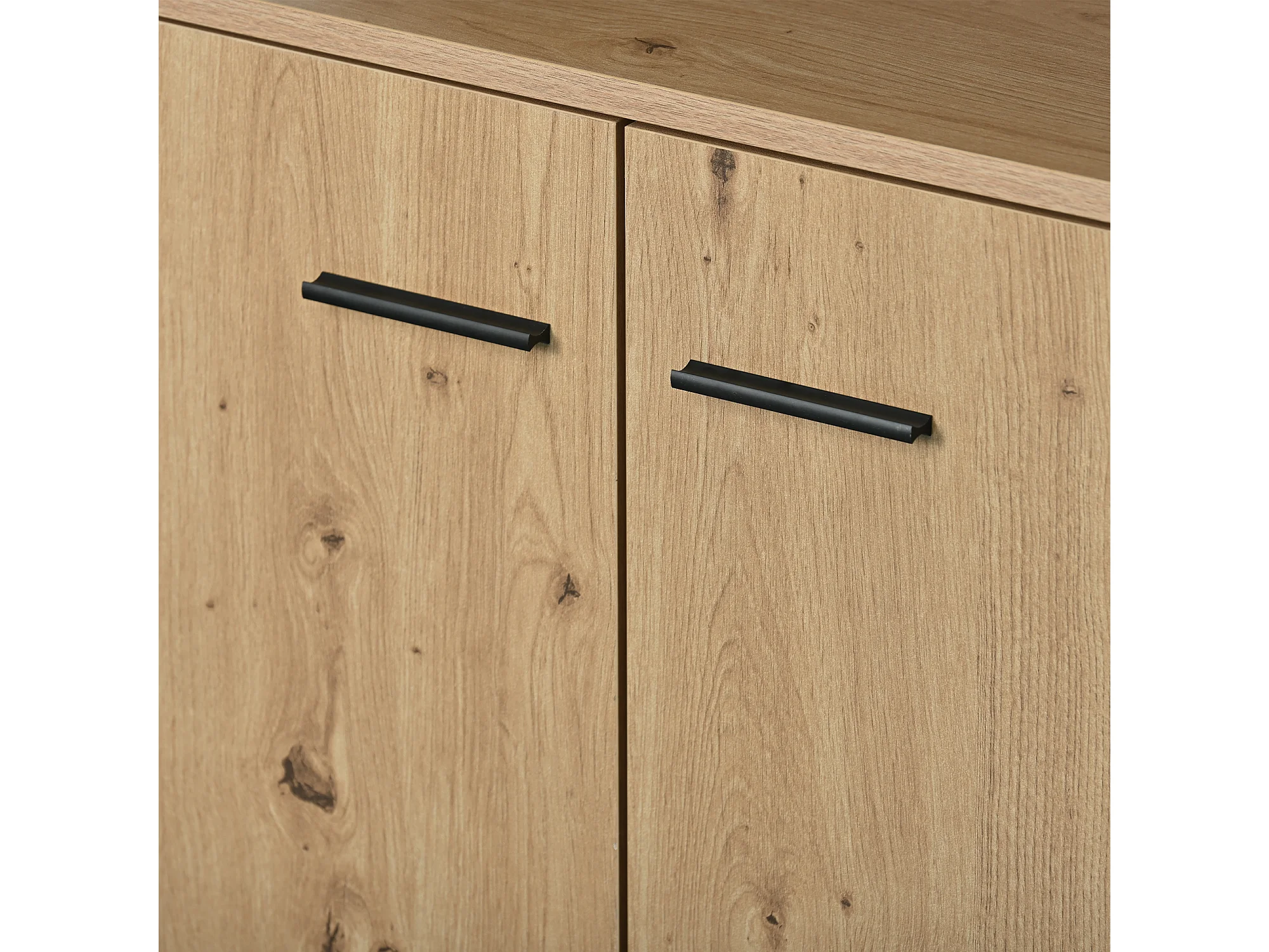 Buffet 3 portes avec grand espace de rangement, portes en placage bois massif à texture concave et convexe, Petit meuble avec finition