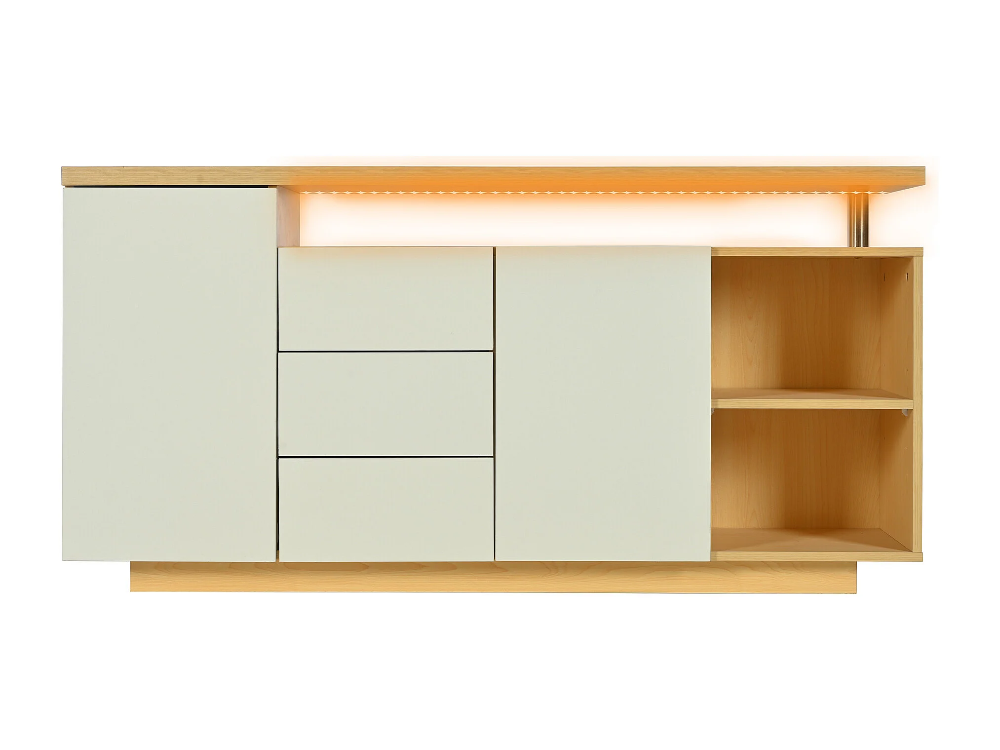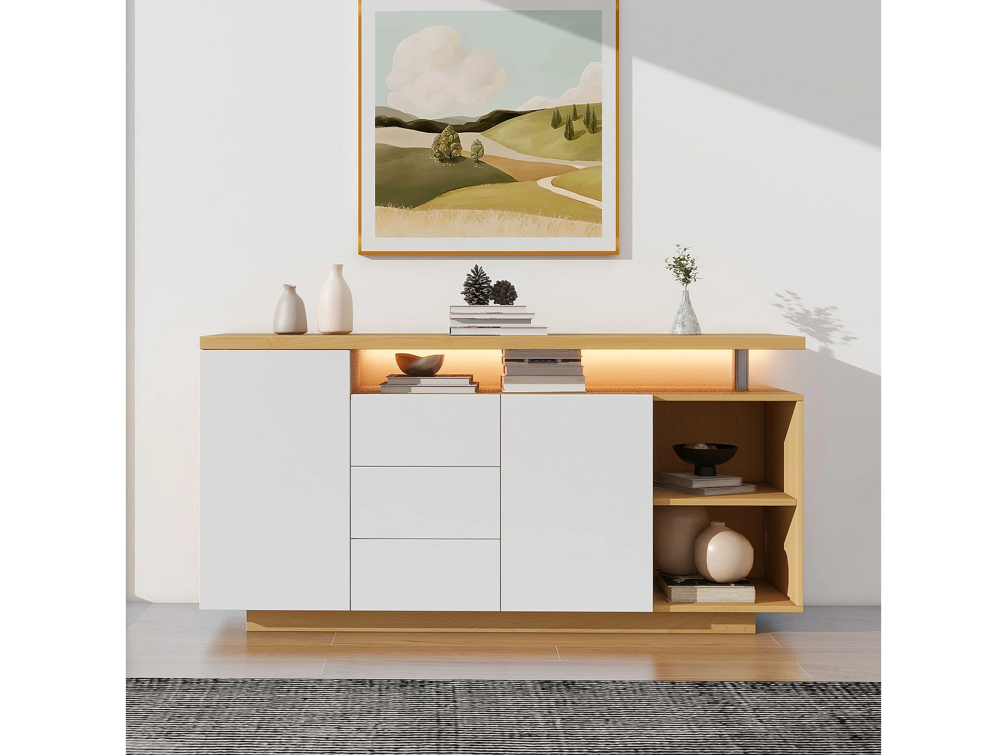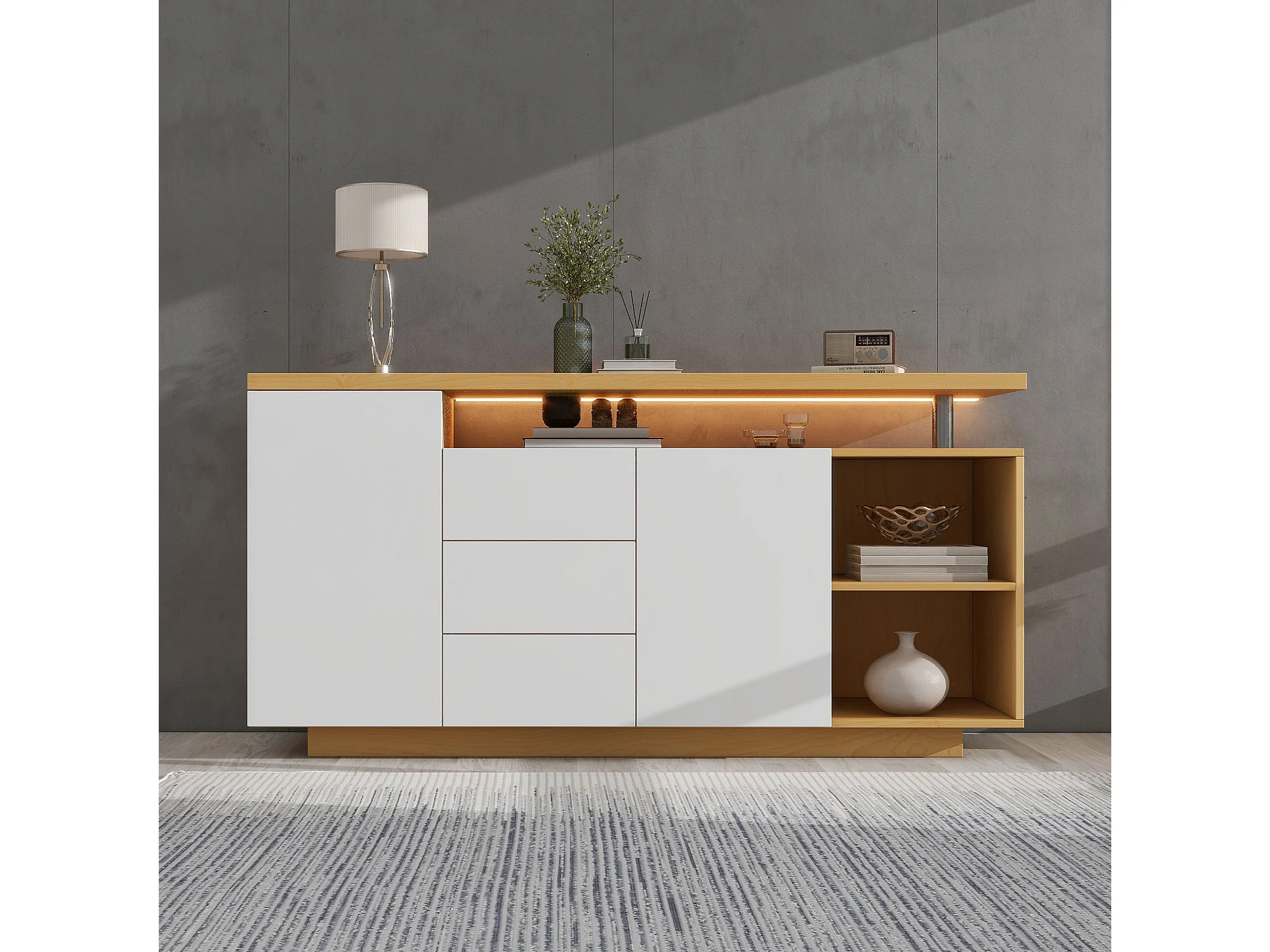 Buffet 140x40x70 cm LED avec 2 portes 3 tiroirs et rangement ouvert - meuble de rangement en bois - blanc