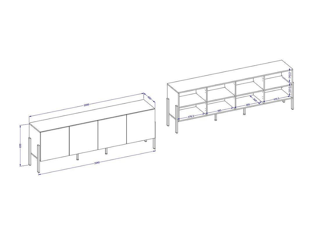 Buffet SALMA – 4 portes Push-to-Open – Blanc super mat & noir mat, 204×70×40 cm