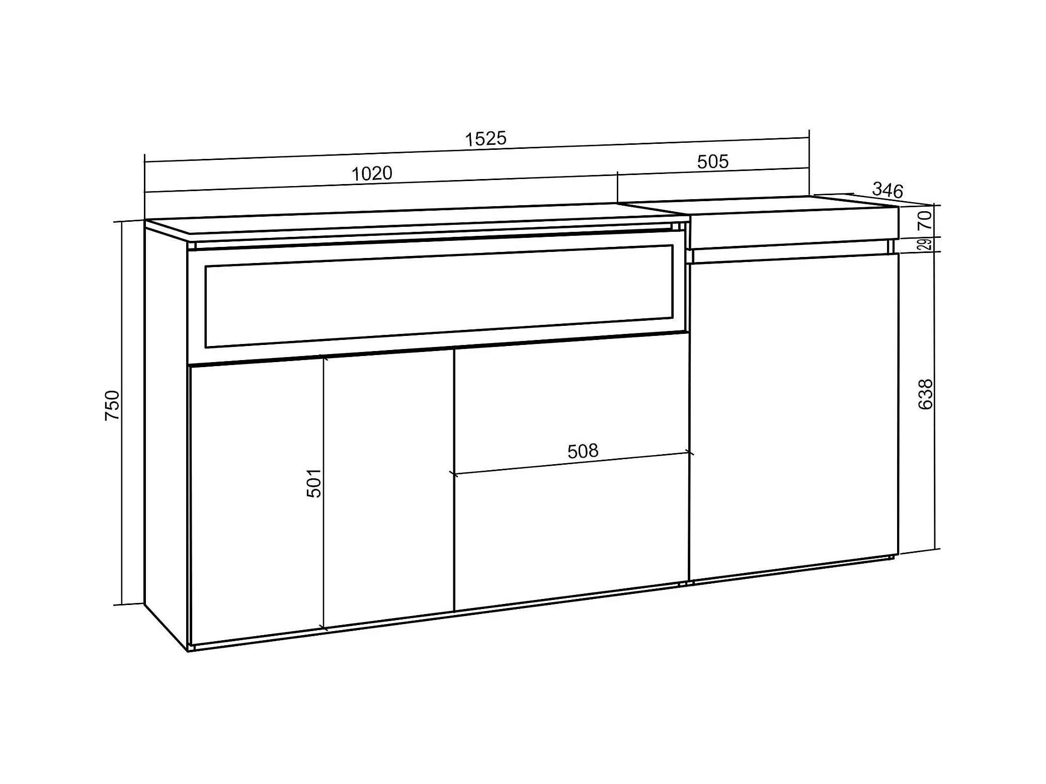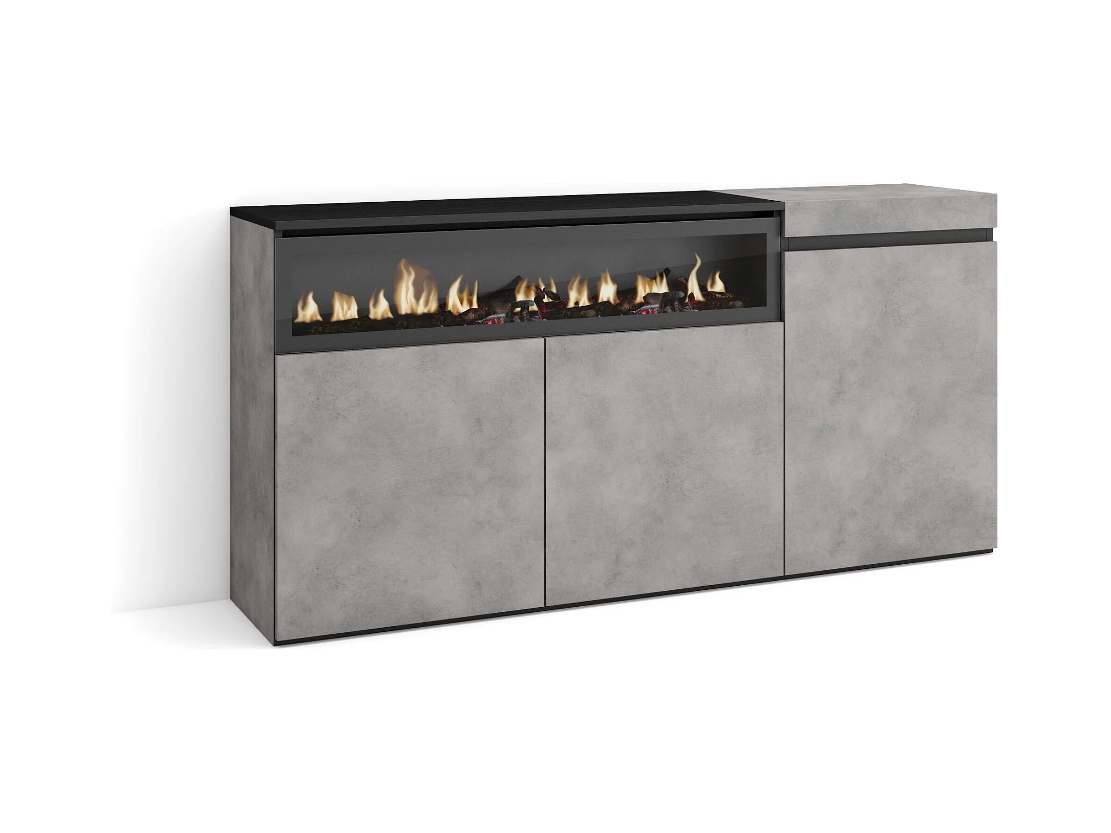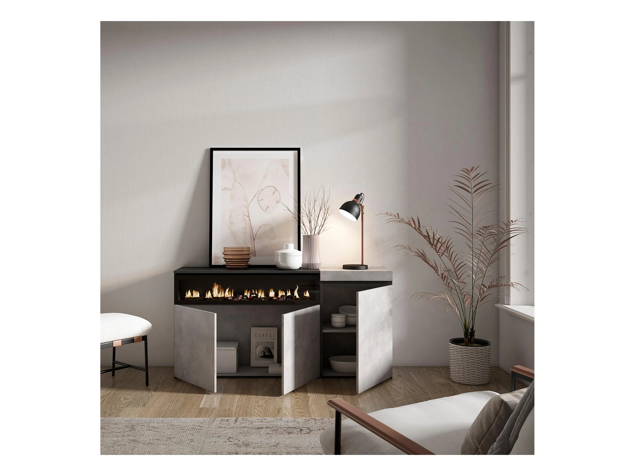 Buffet salon et cuisine, 200x75x35cm, 4 Portes, Cheminée électrique, Ciment