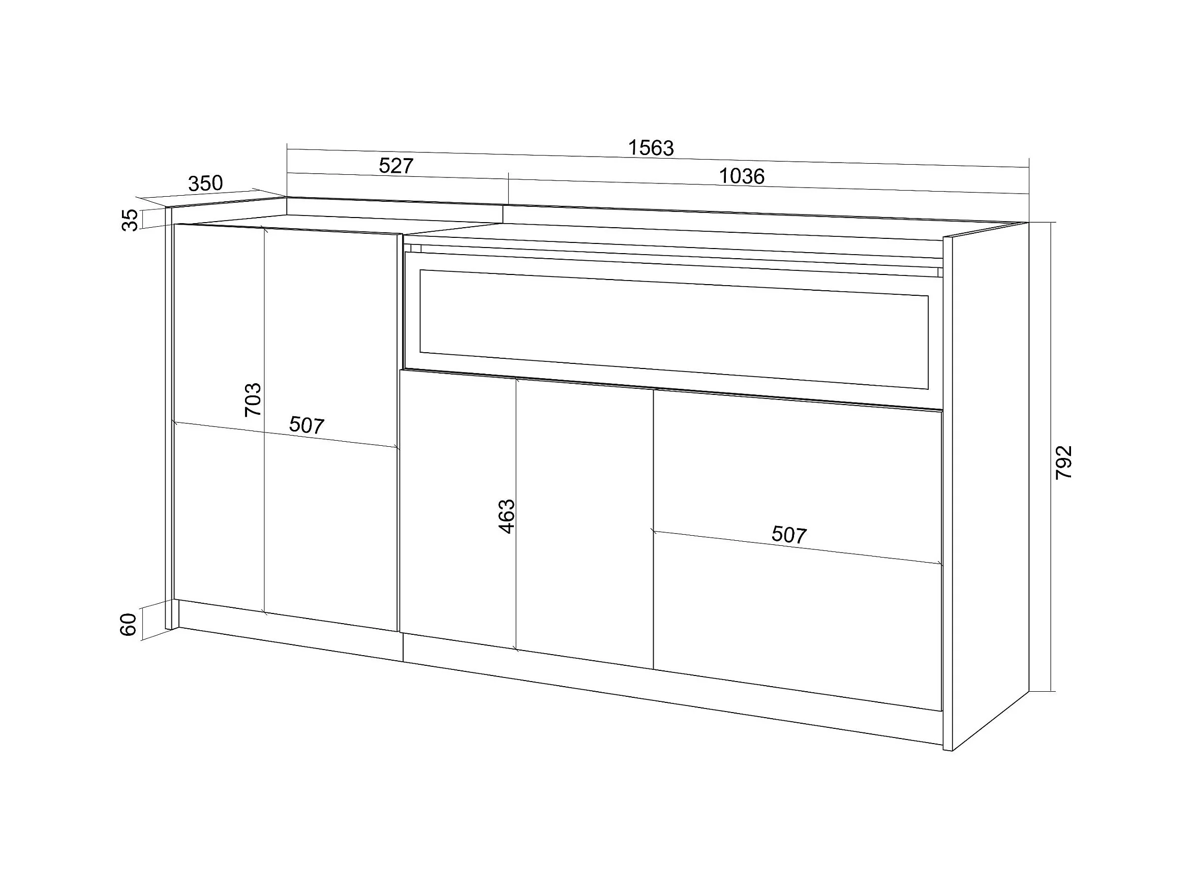 Buffet salon et cuisine, 156x80x37 cm, 3 Portes, Meuble chaussure, Chêne foncé et Noir
