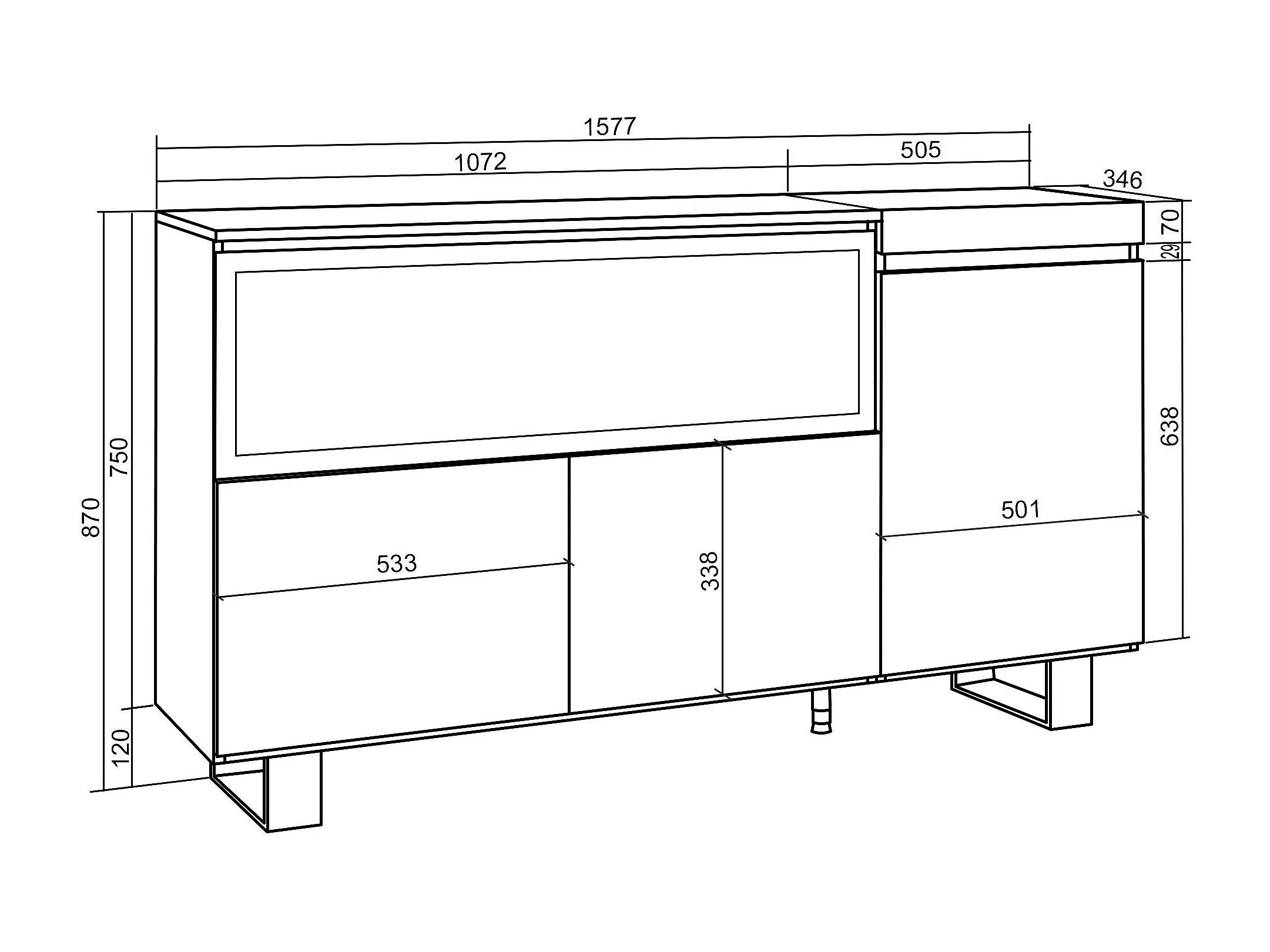 Buffet salon et cuisine, 158x35x87cm, 3 Portes, Cheminée électrique XXL, Design industriel, Ciment