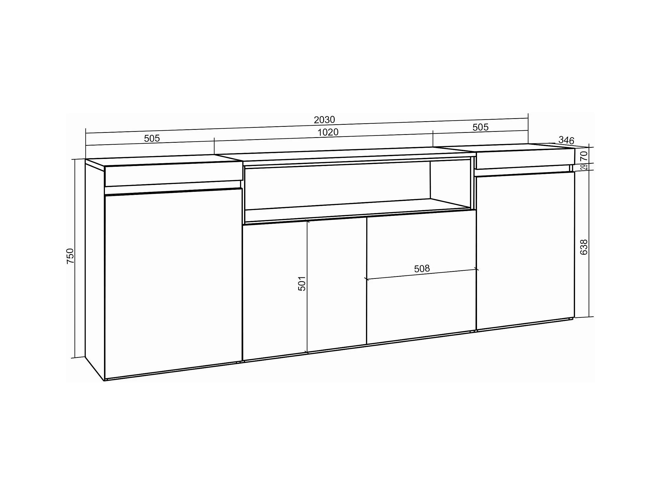 Buffet salon et cuisine, 200x75x35cm, 4 Portes, Meuble chaussure, Blanc et noir