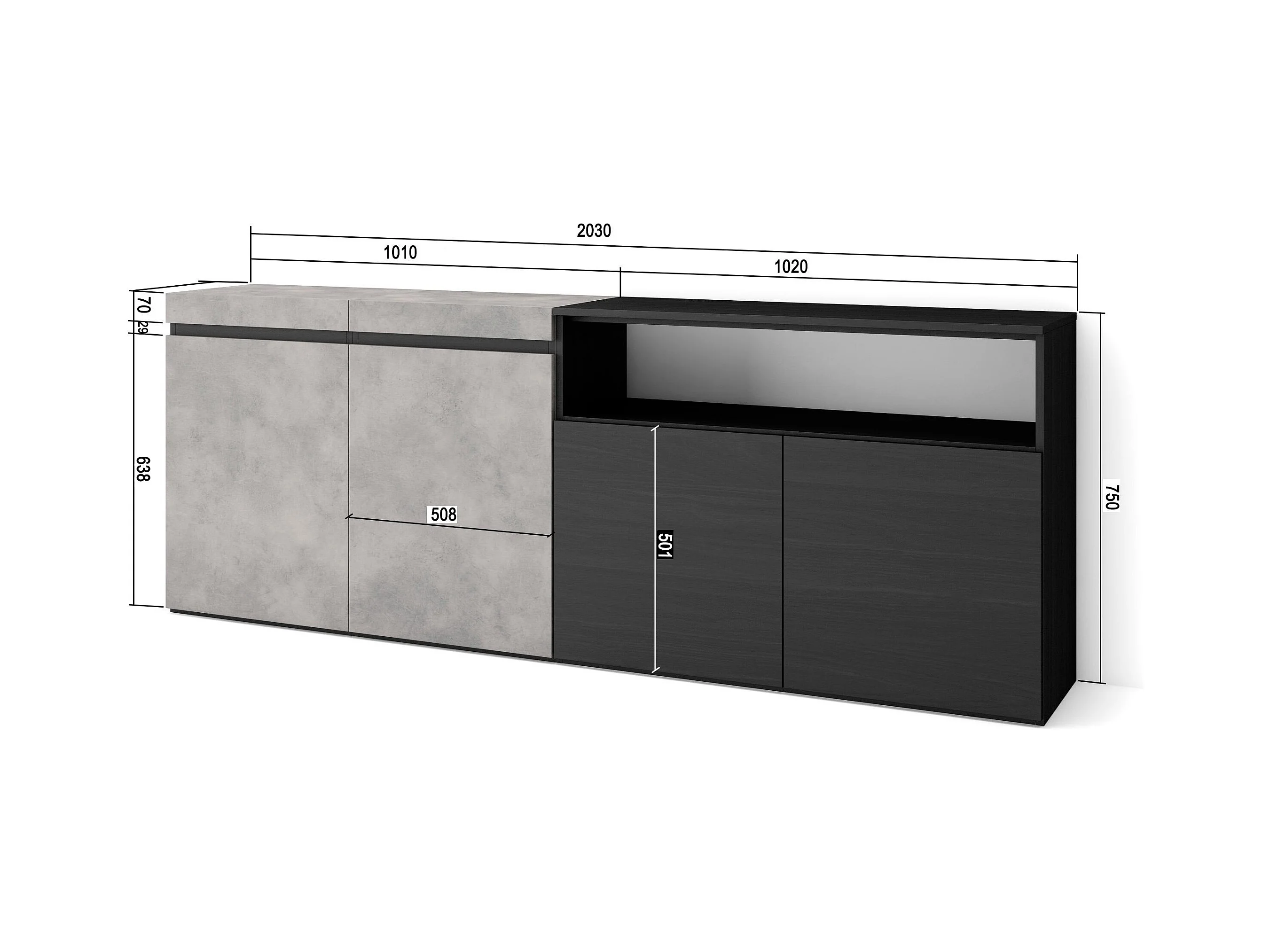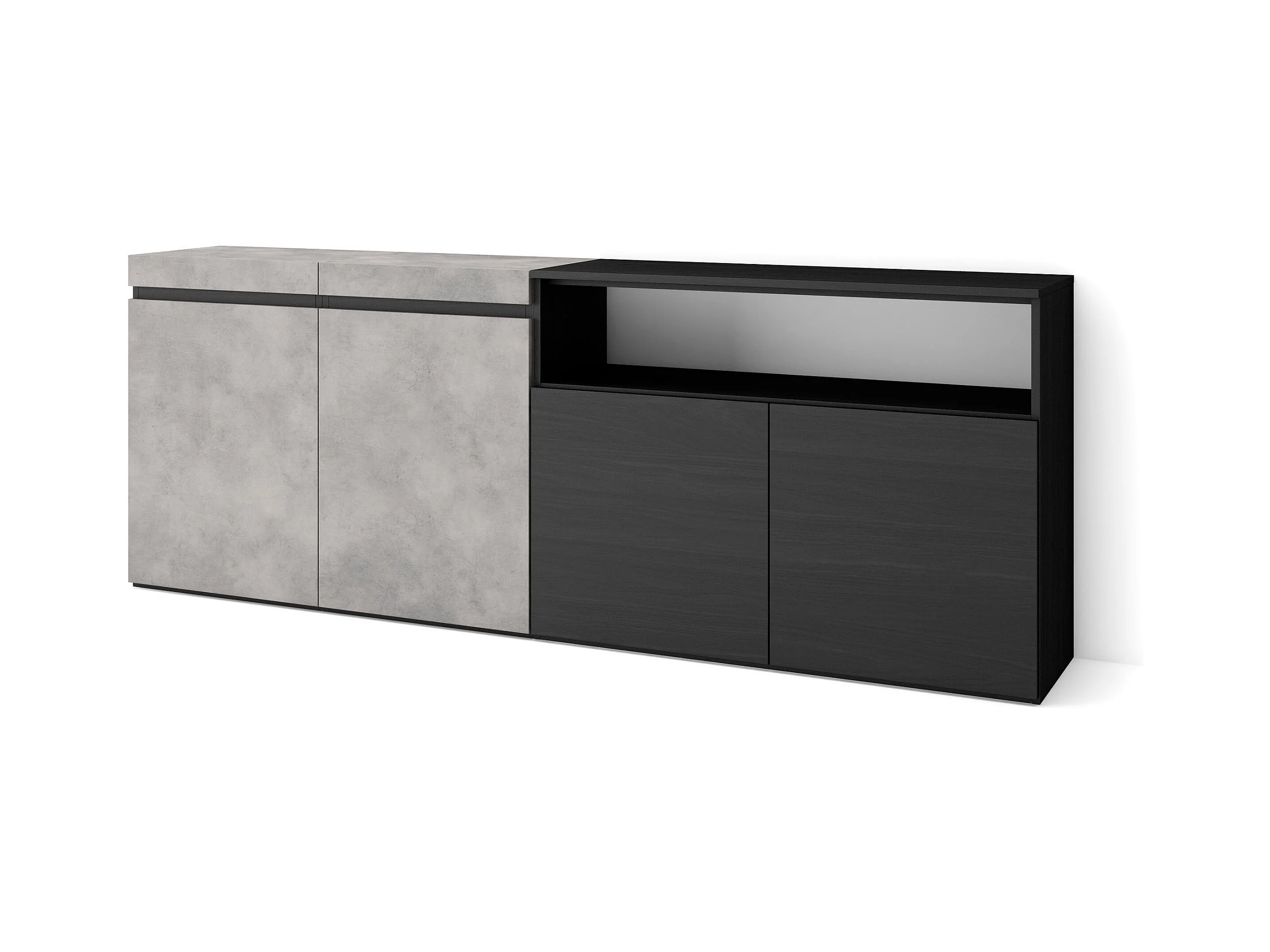 Buffet salon et cuisine, 200x35x87cm, 4 Portes, Design industriel, Ciment