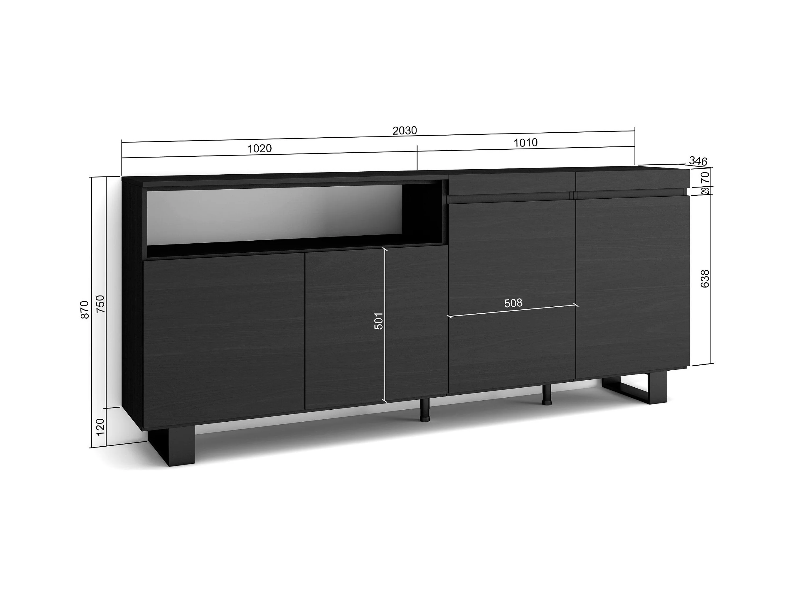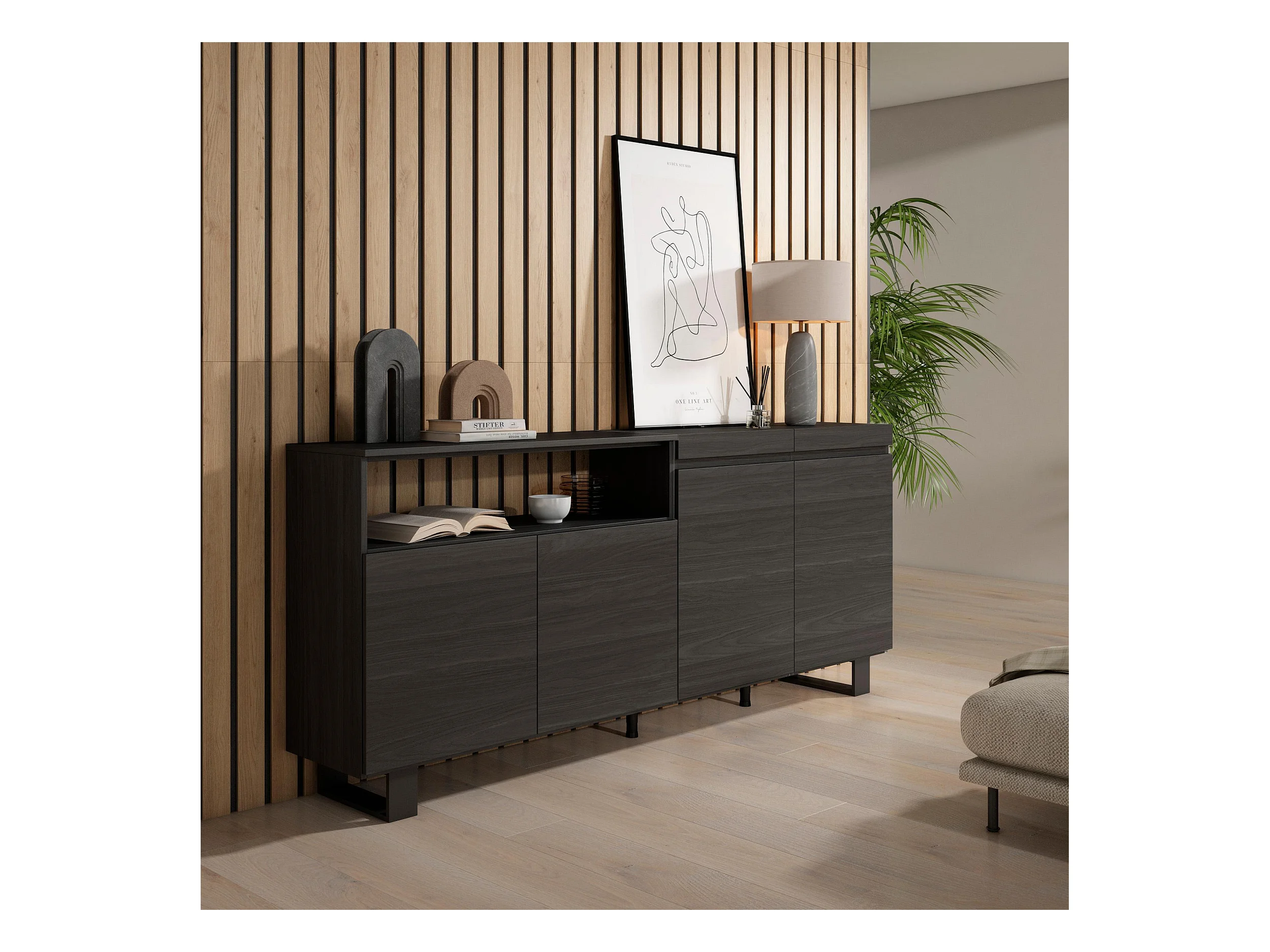 Buffet salon et cuisine, 200x35x87cm, 4 Portes, Design industriel, Noir