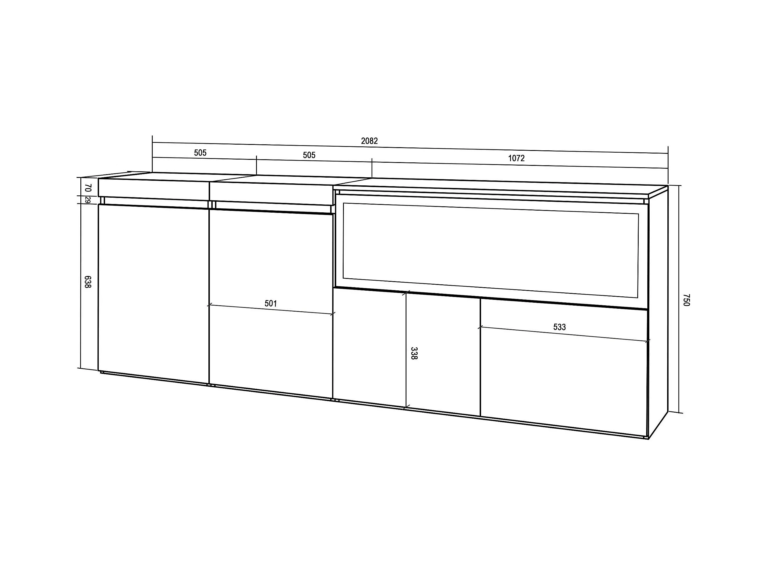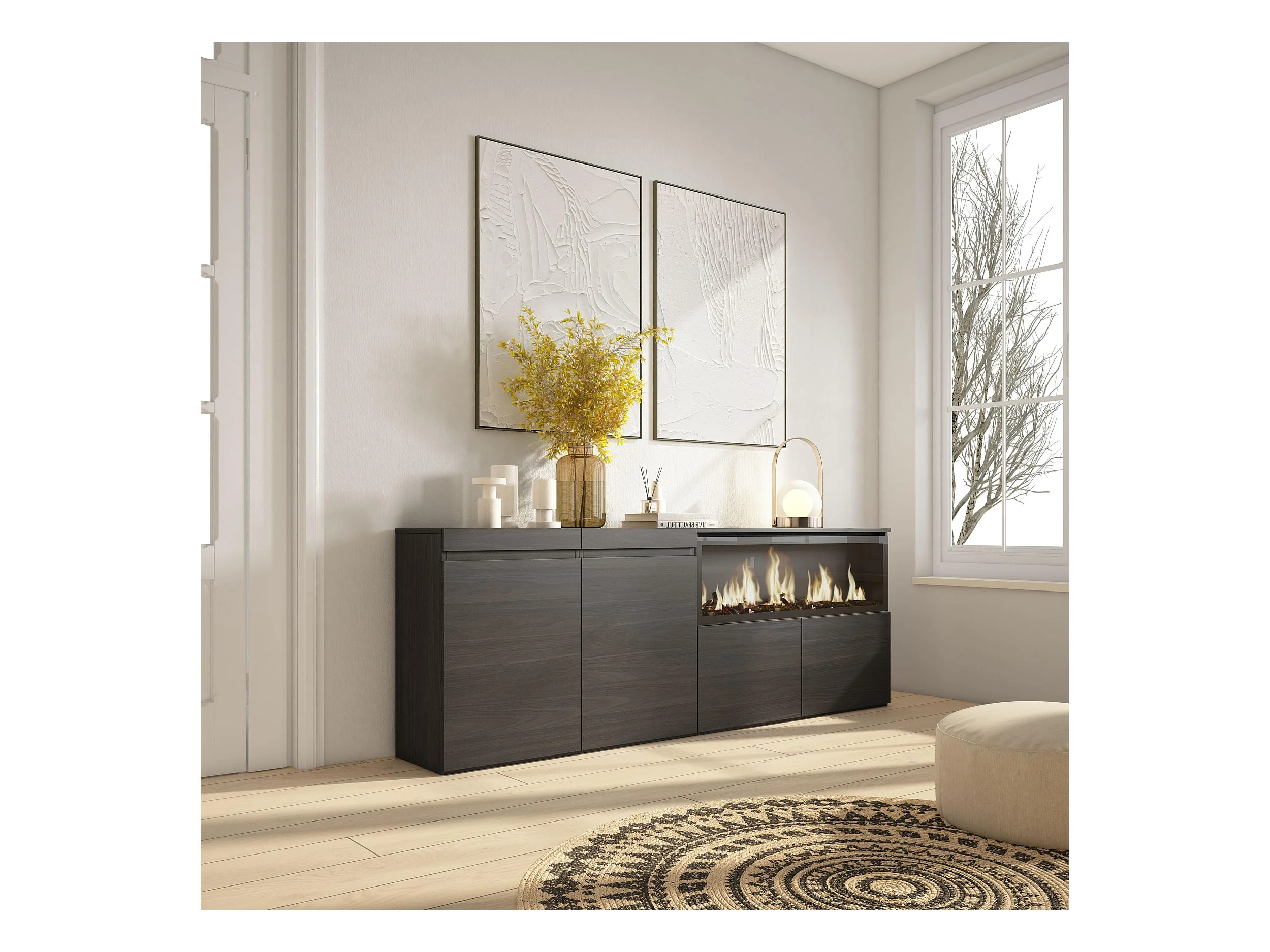 Buffet salon et cuisine, 208x35x75cm, 4 Portes, Cheminée électrique XXL, Noir