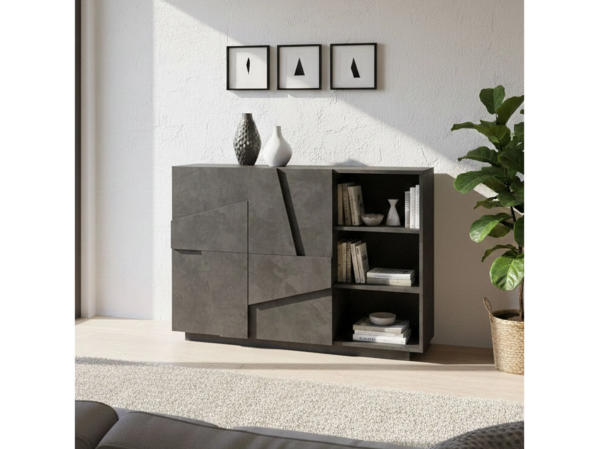 Buffet Salvo, Buffet de salon multifonctionnel, Buffet de salon 2 portes, 100% Made in Italy, 121x38h86 cm, Ardoise
