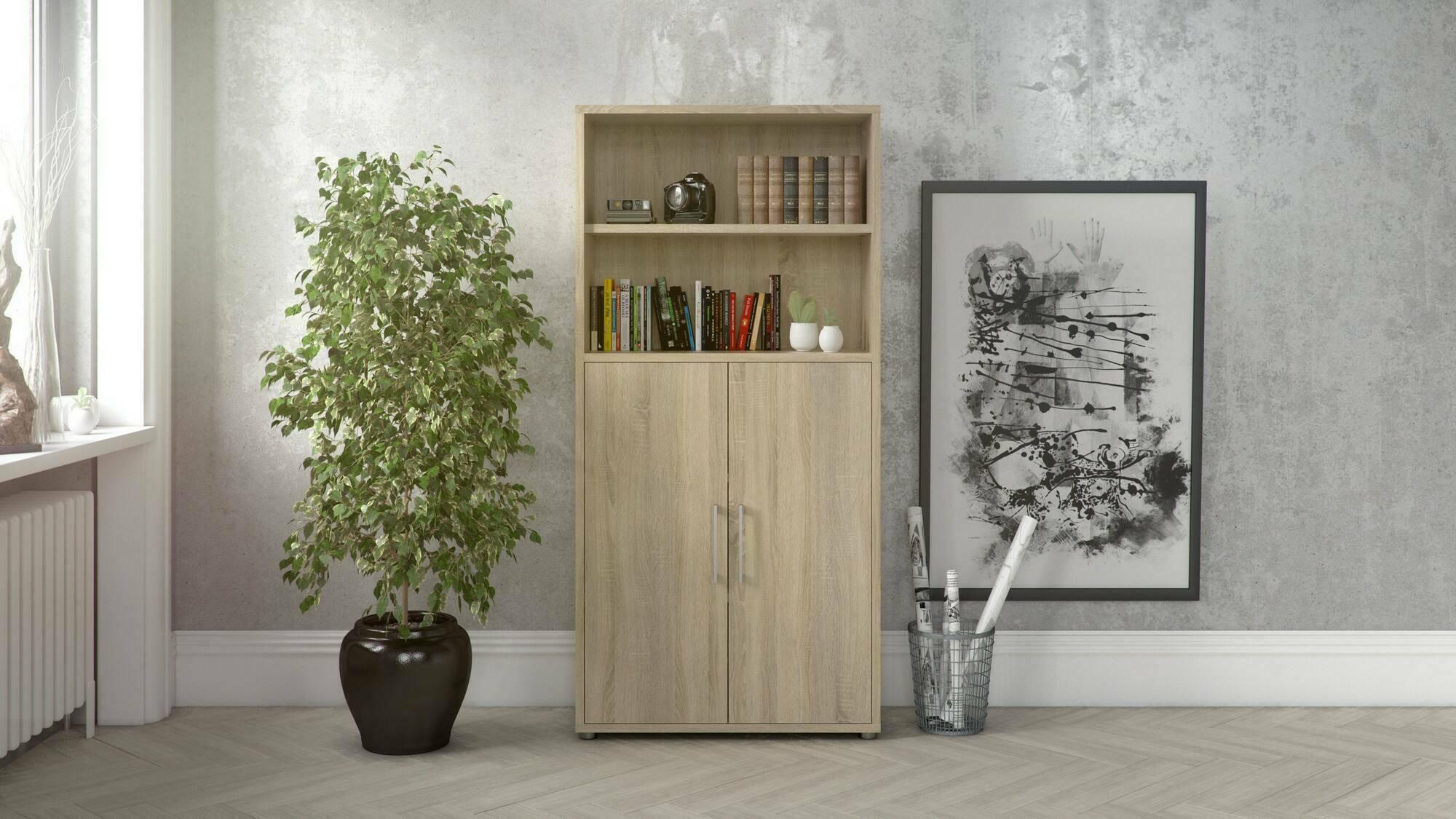 Buffet Saotome, Buffet du salon, Commode de salon, Garde-manger de cuisine, 89x40 h186 cm, Chêne