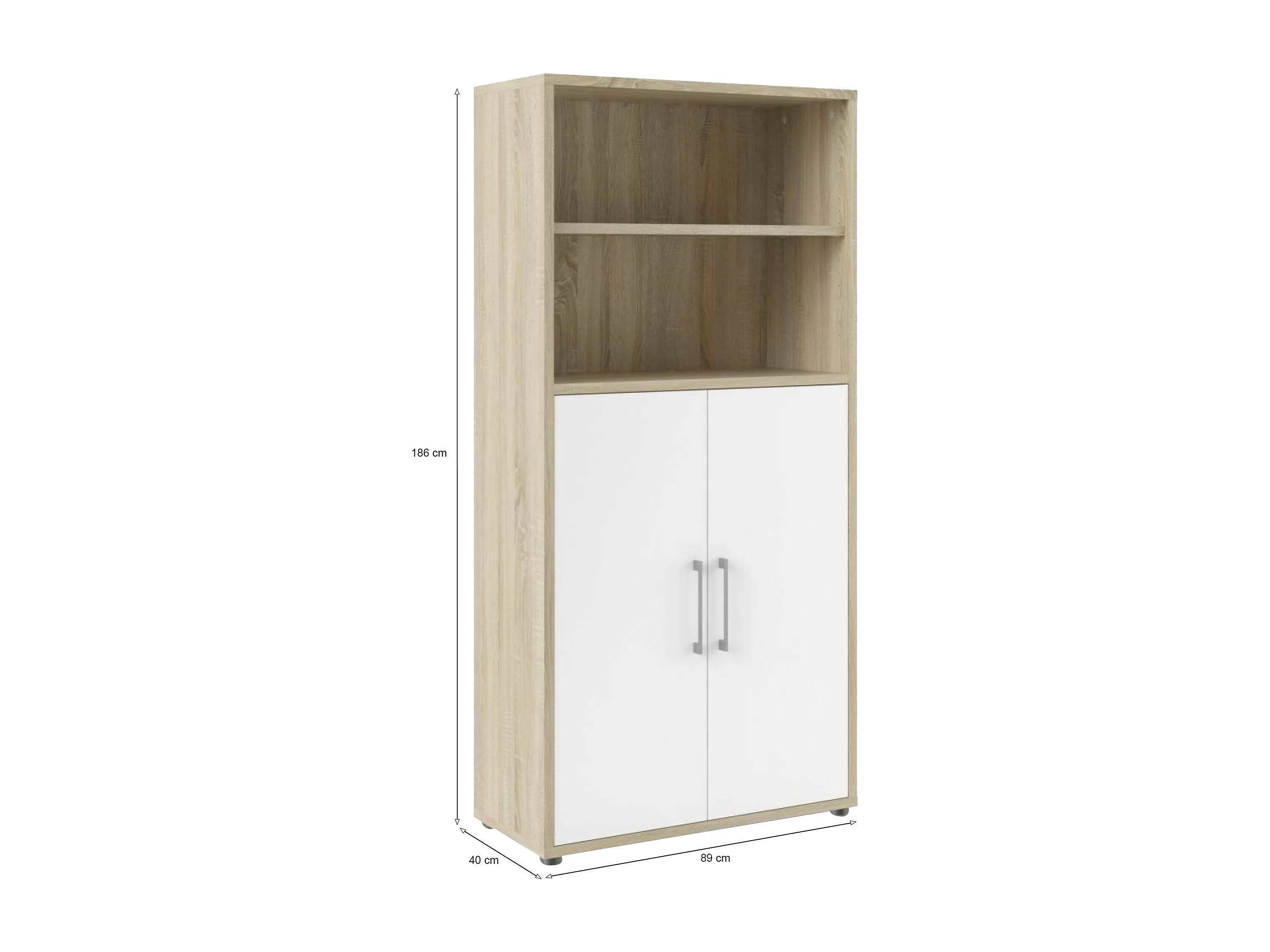 Buffet Saotome, Buffet du salon, Commode de salon, Garde-manger de cuisine, 89x40 h186 cm, Chêne et Blanc