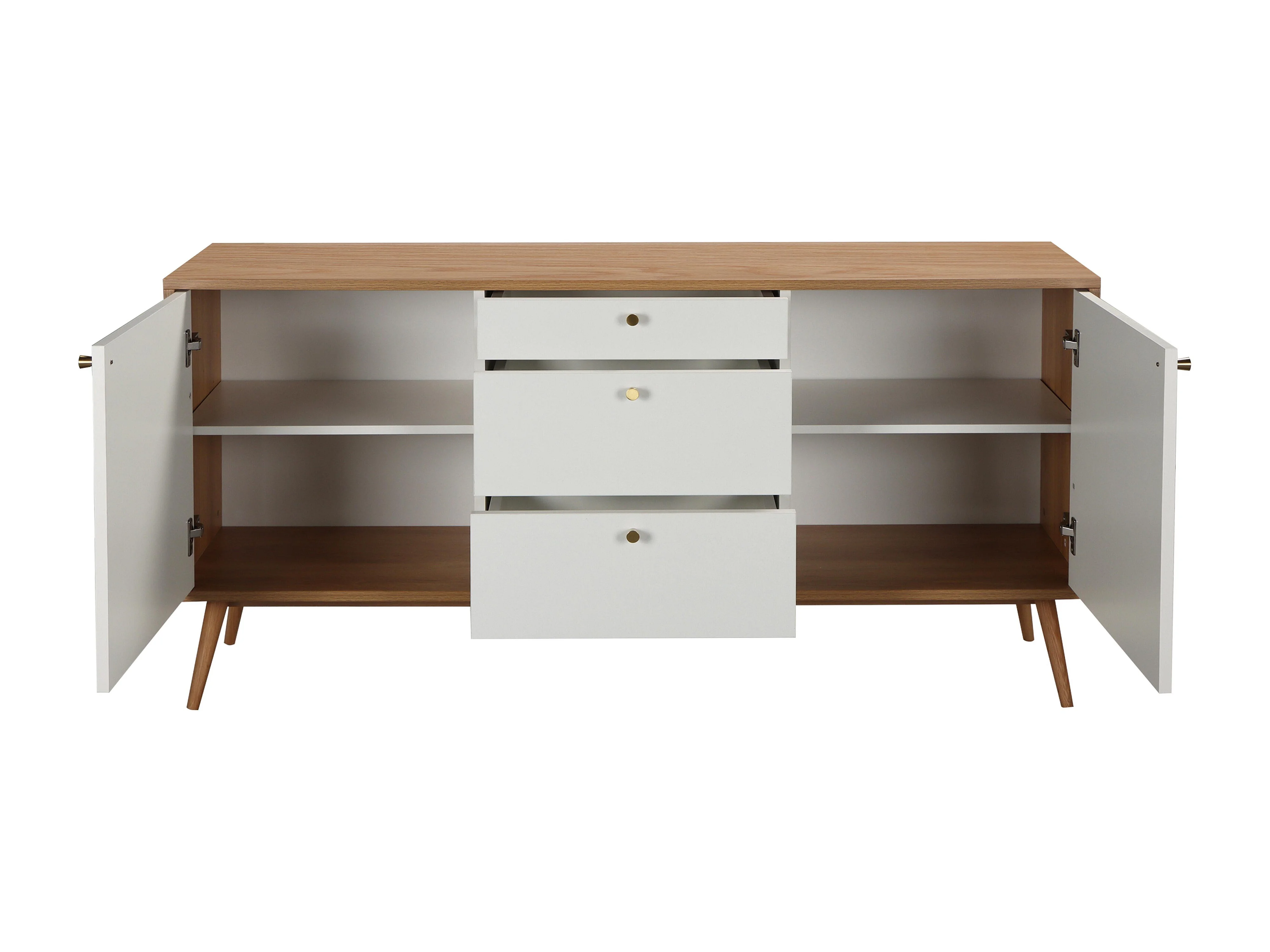 Buffet scandinave effet bois clair 2 portes 3 tiroirs 150 cm blanc