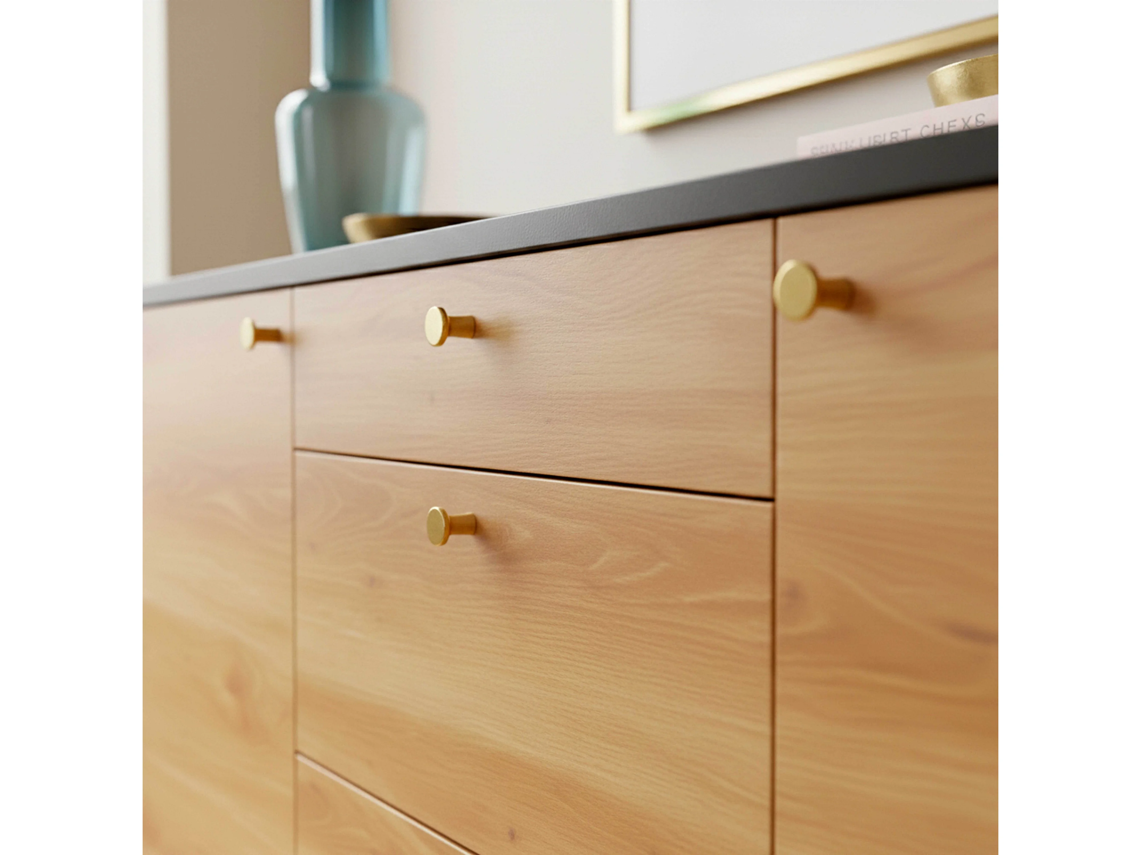 Buffet scandinave effet bois clair 2 portes 3 tiroirs 150 cm noir