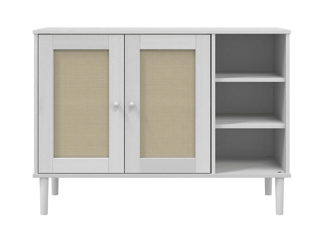 Buffet SENJA aspect rotin blanc 112x40x80cm bois massif de pin