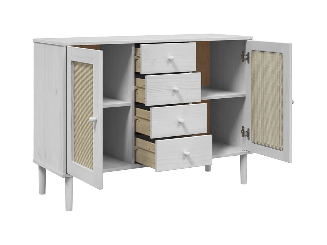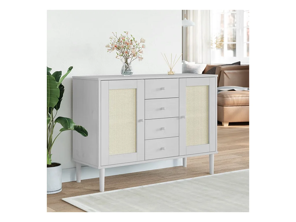 Buffet SENJA aspect rotin blanc 112x40x80cm bois massif de pin