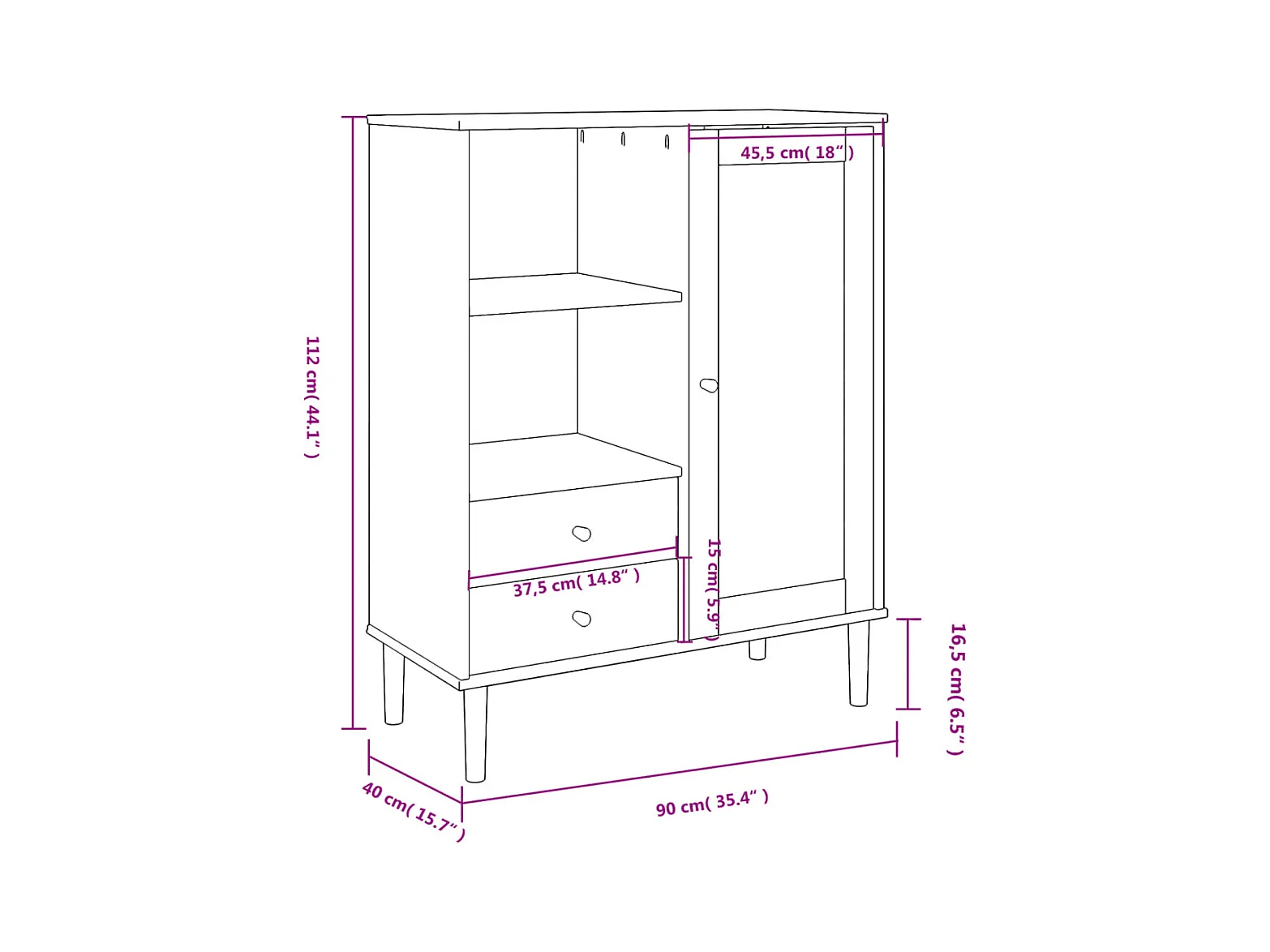 Buffet SENJA aspect rotin blanc 90x40x112cm bois massif de pin