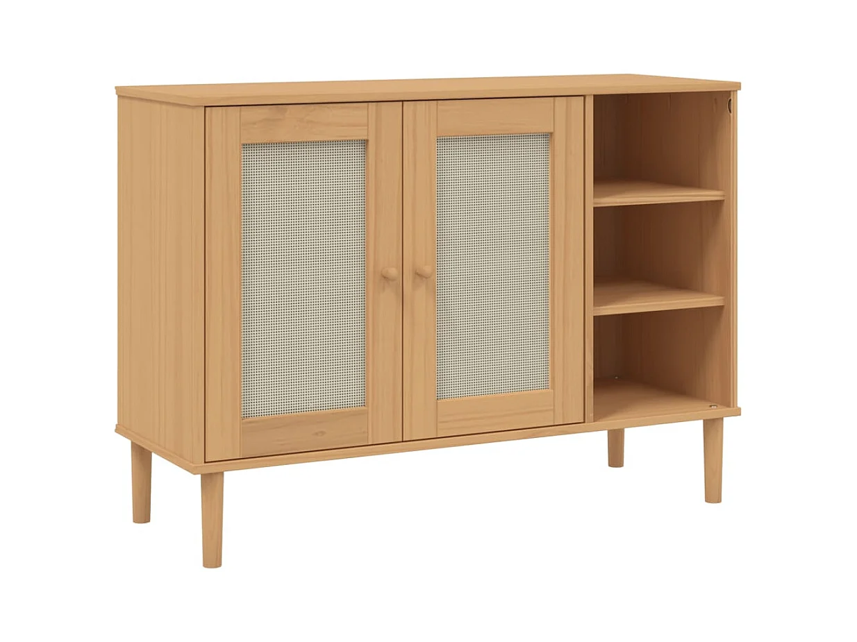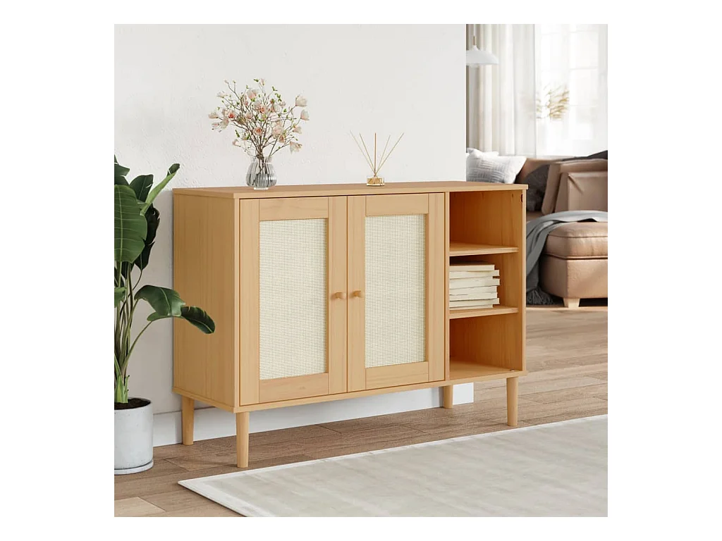 Buffet SENJA aspect rotin marron 112x40x80cm bois massif de pin