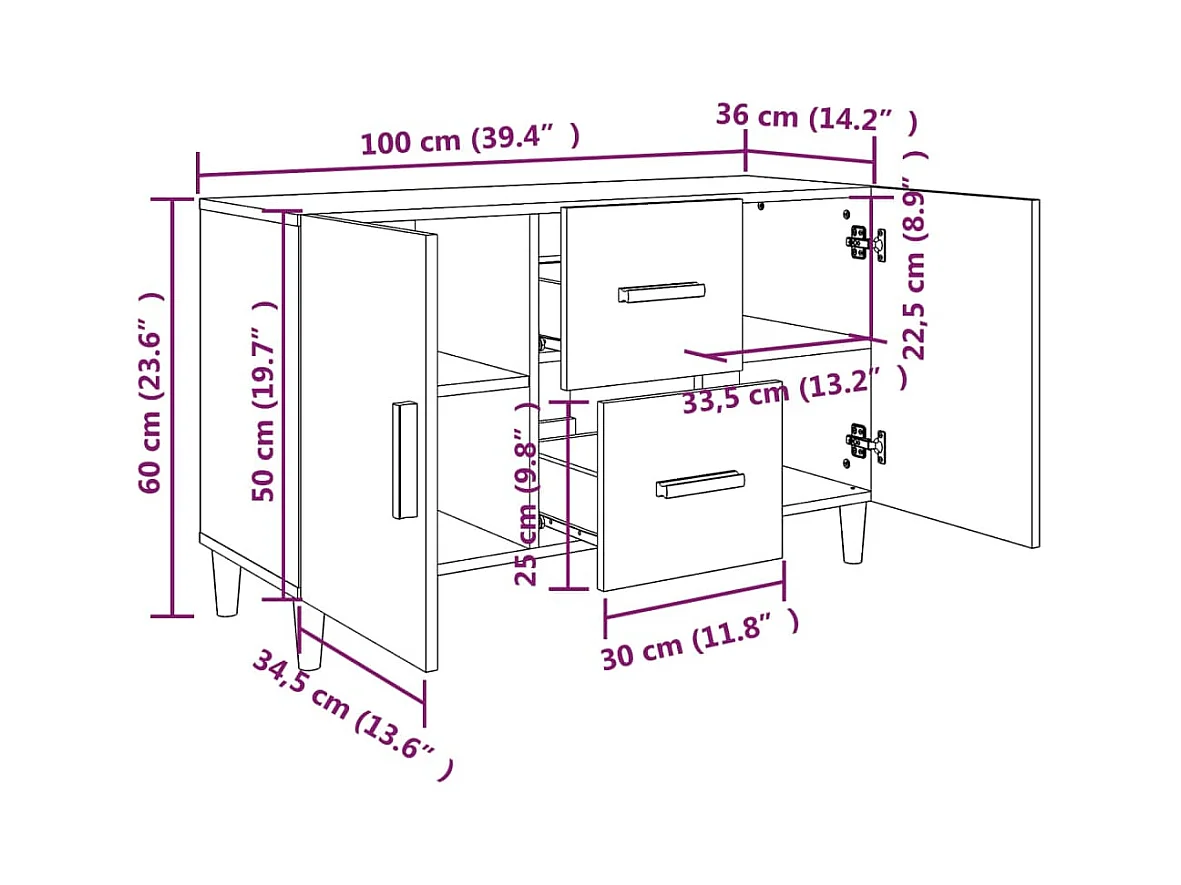 Buffet sonoma gris 100x36x60 cm bois d'ingénierie