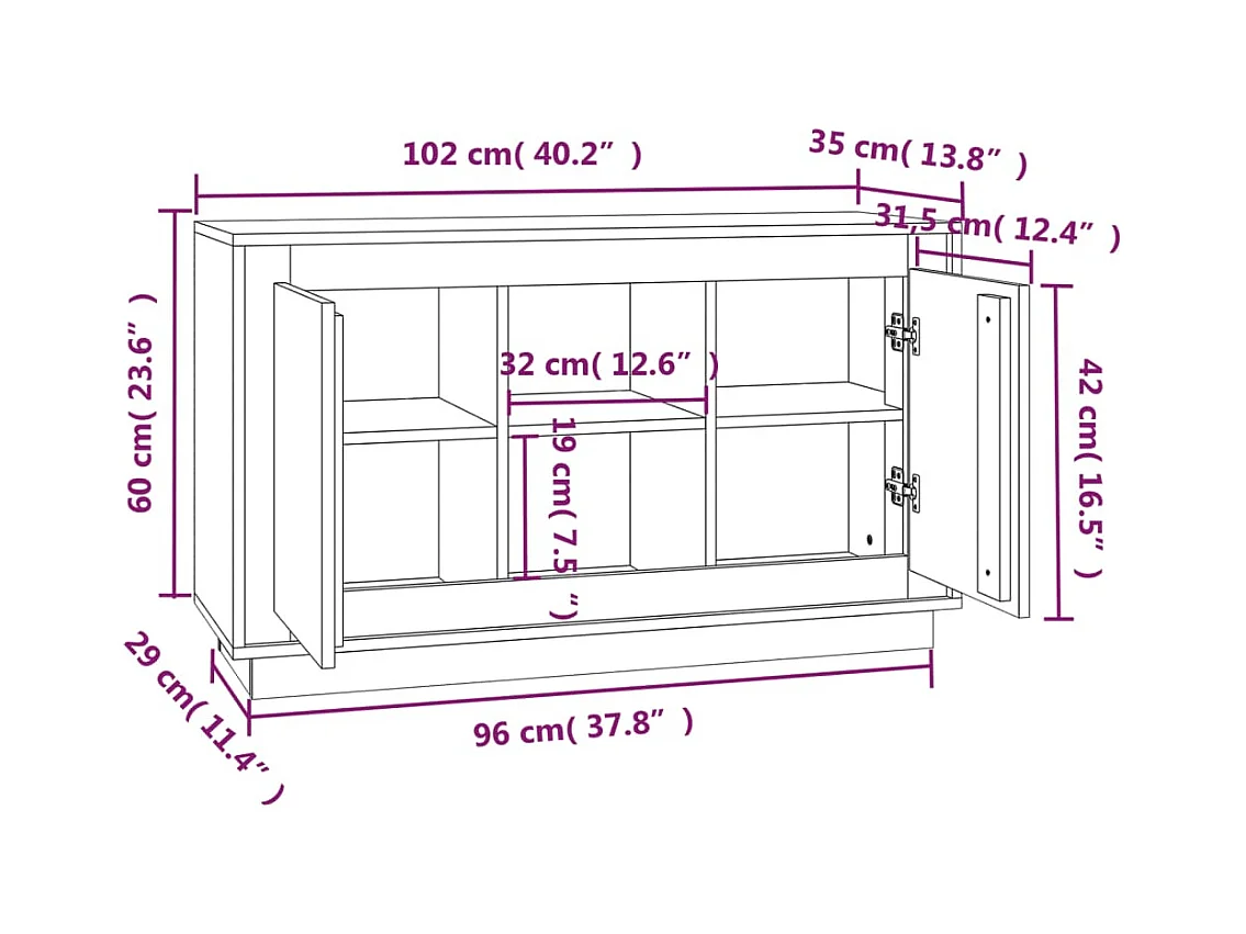 Buffet sonoma gris 102x35x60 cm bois d'ingénierie