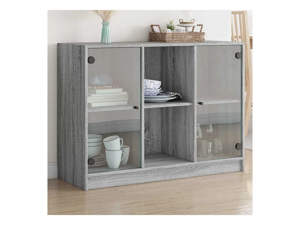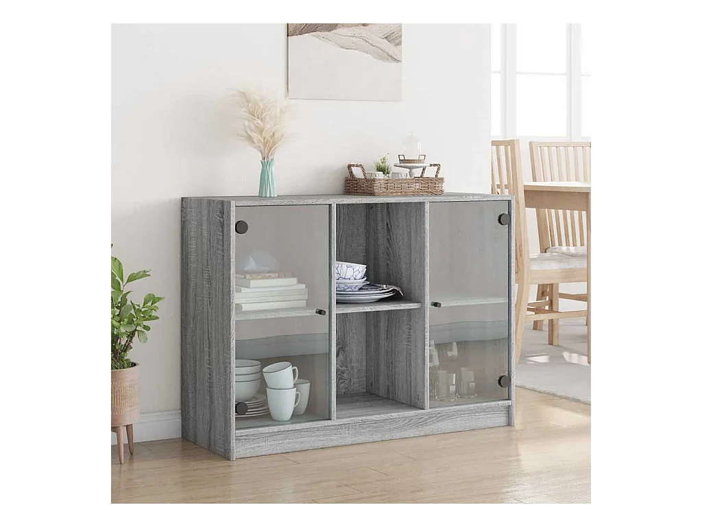 Armoire latérale avec portes en verre sonoma gris 35x37x75,5 cm