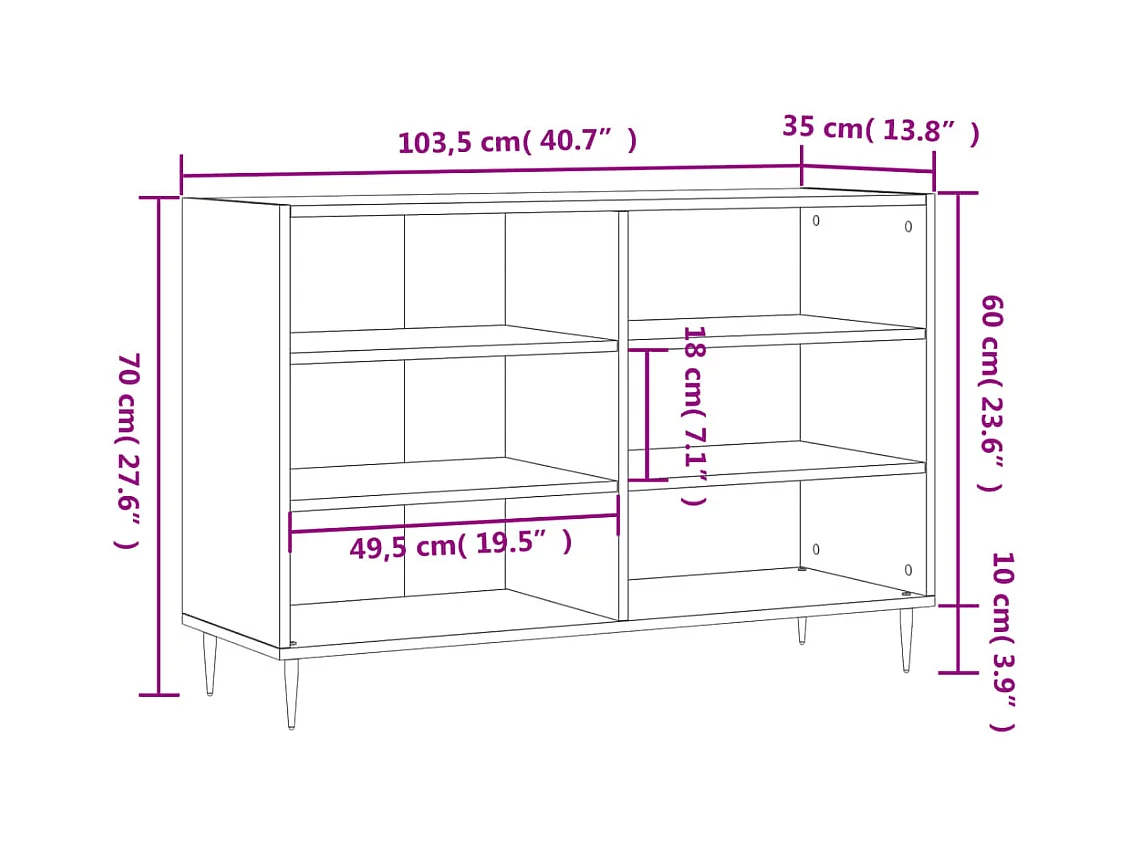Buffet sonoma gris 103,5x35x70 cm bois d'ingénierie