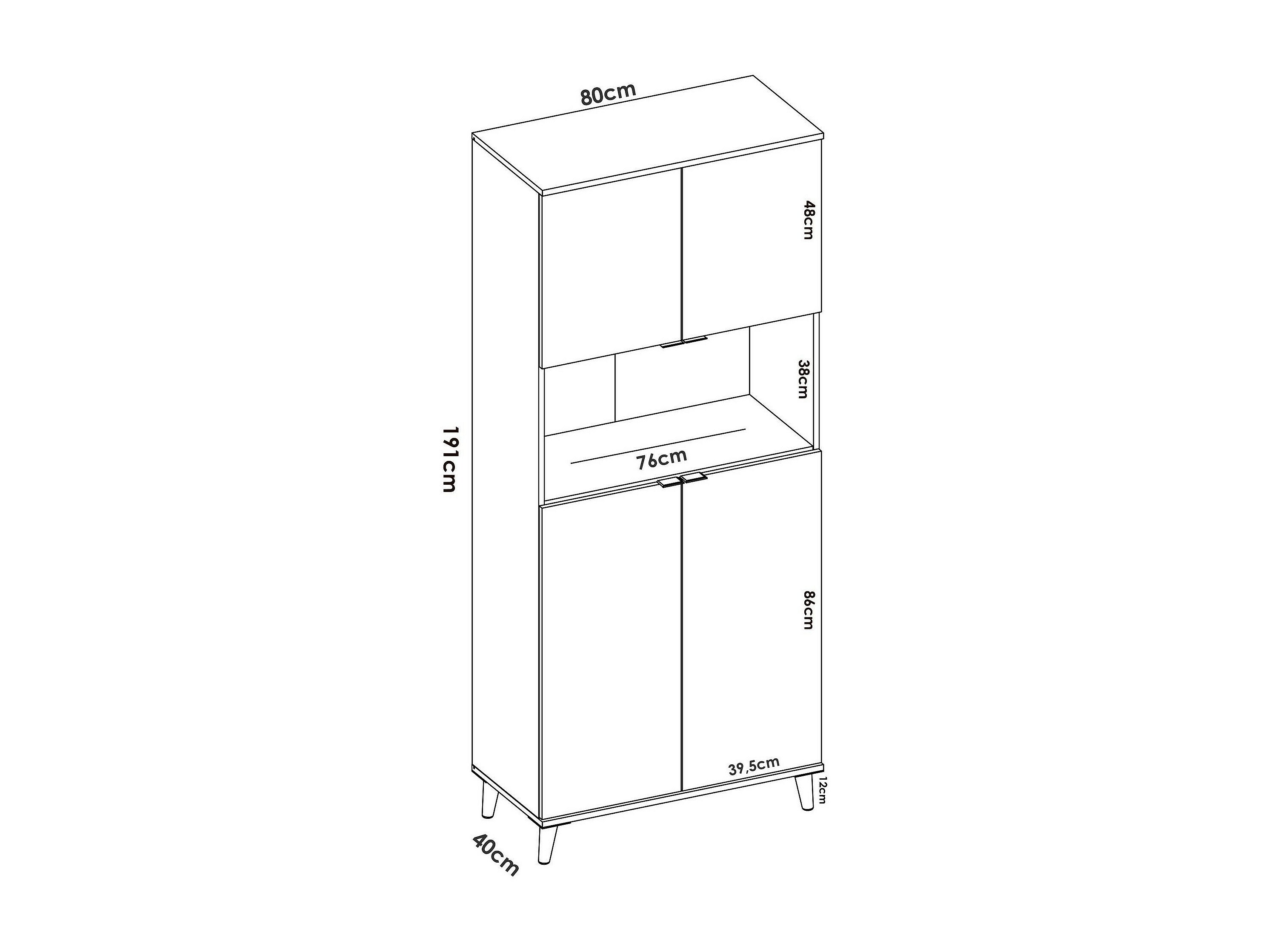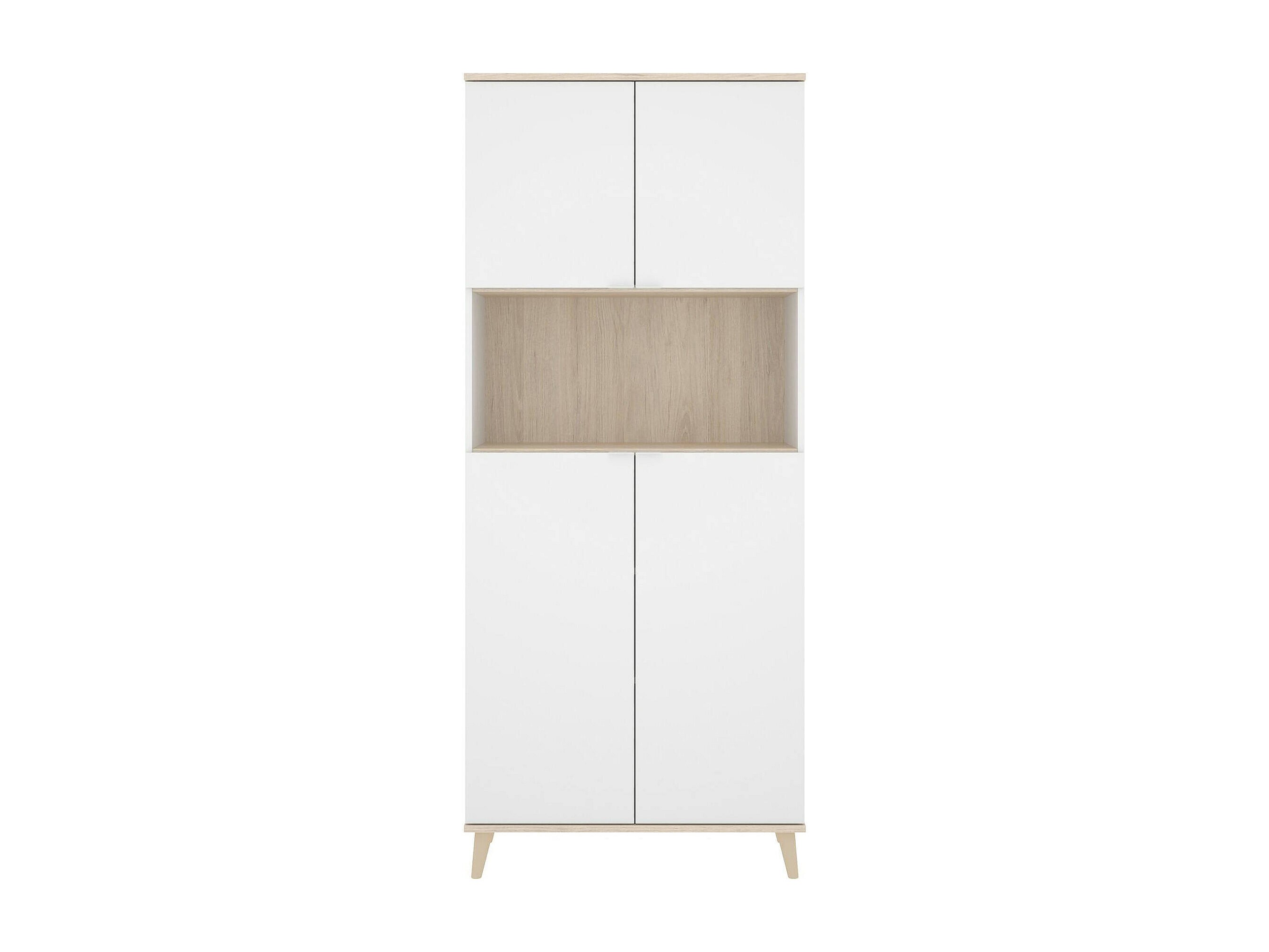 Buffet Spino, Buffet garde-manger de salon, Buffet de salon moderne avec 4 portes, 80x40h191 cm, Blanc et Chêne