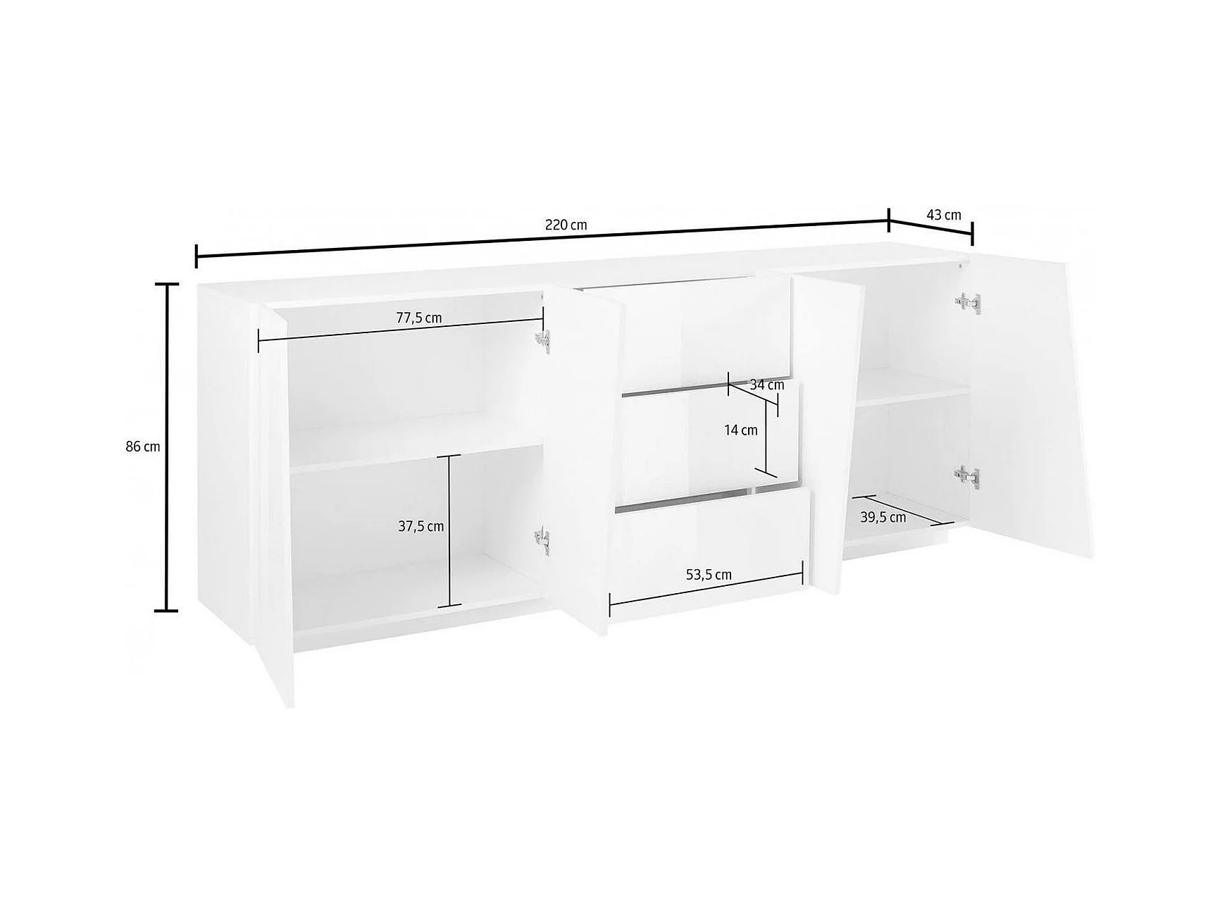 Buffet Sven, Buffet de cuisine avec 4 portes et 3 tiroirs, Buffet de salon, 100% Made in Italy, 220x43h86 cm, Ardoise