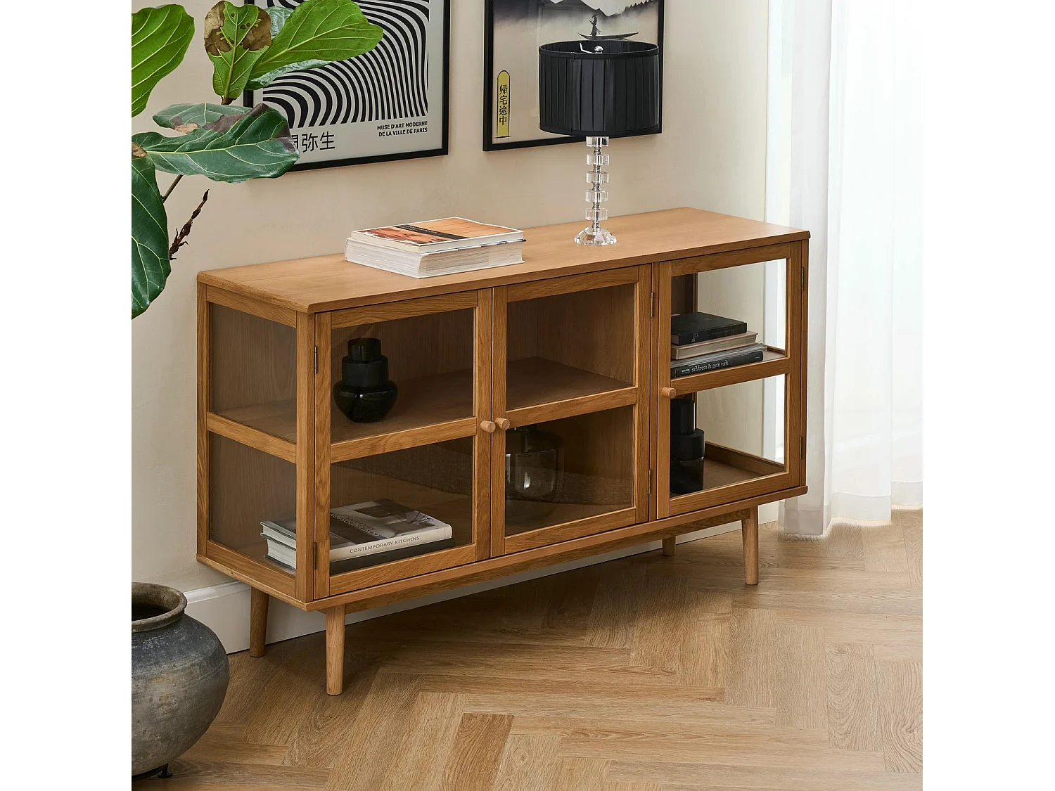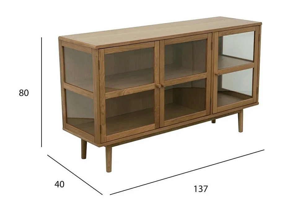 Buffet Svendborg - 3 portes - Chêne massif et verre - naturelle