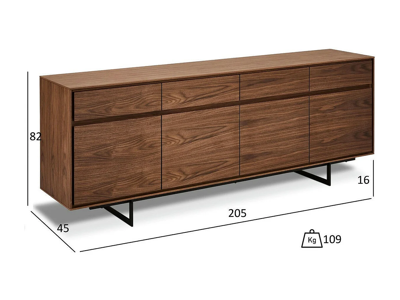 Buffet Tokyo avec 4 portes et 4 tiroirs - MDF et métal - Noyer