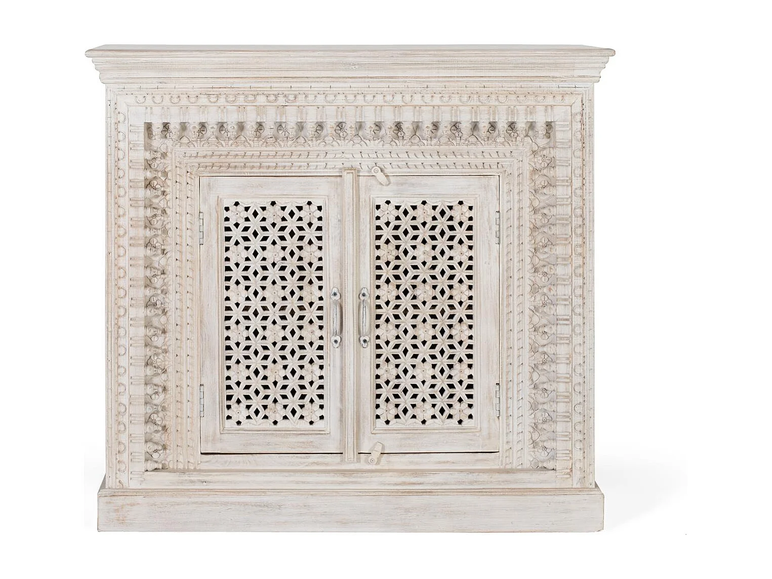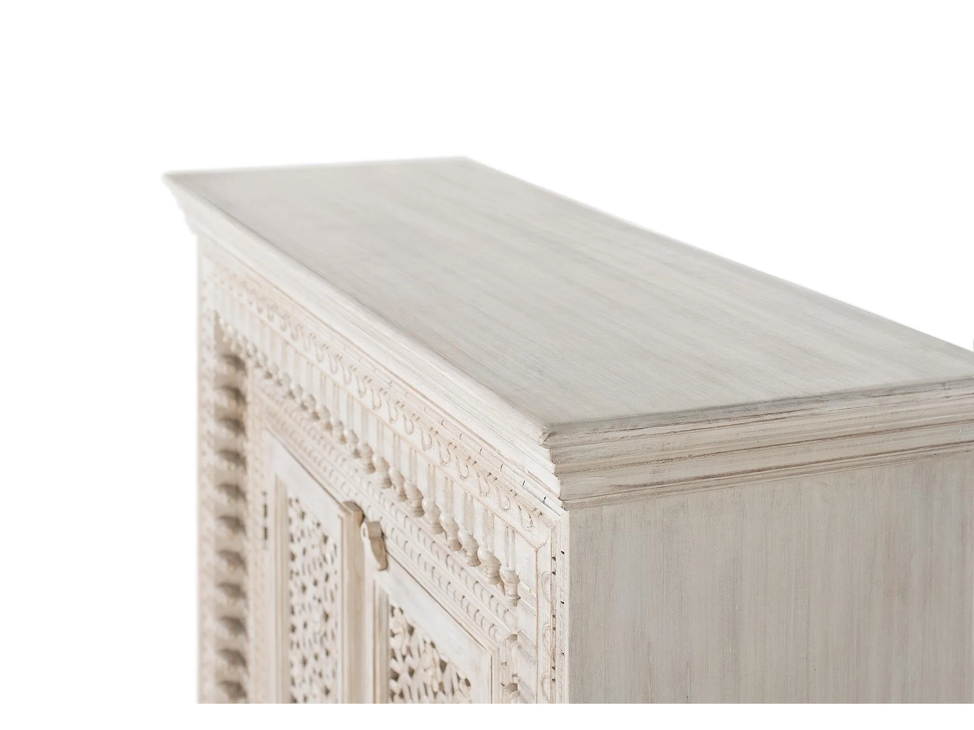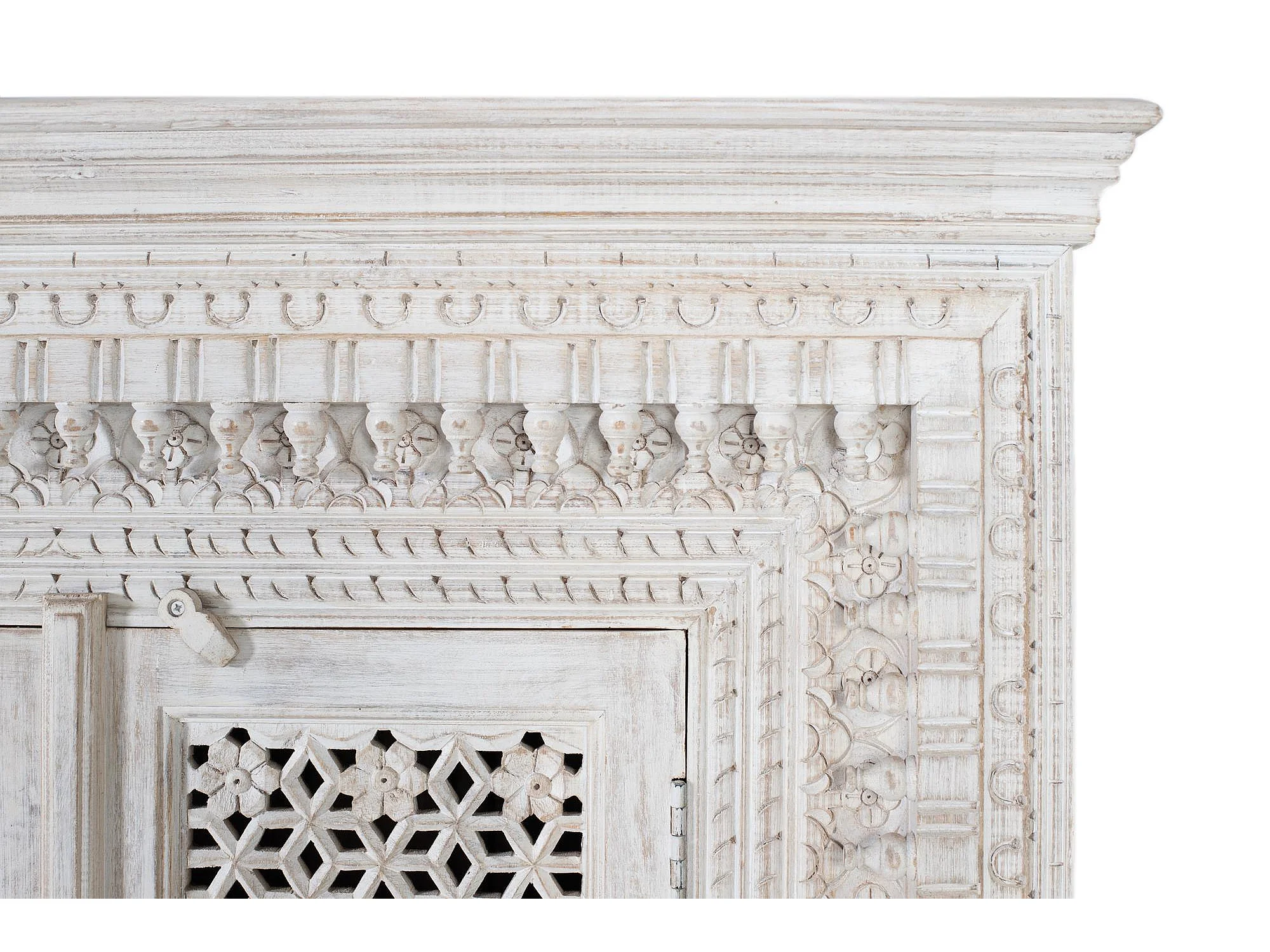 Vitrine en manguier, pieds métal blanc et gris vieilli
