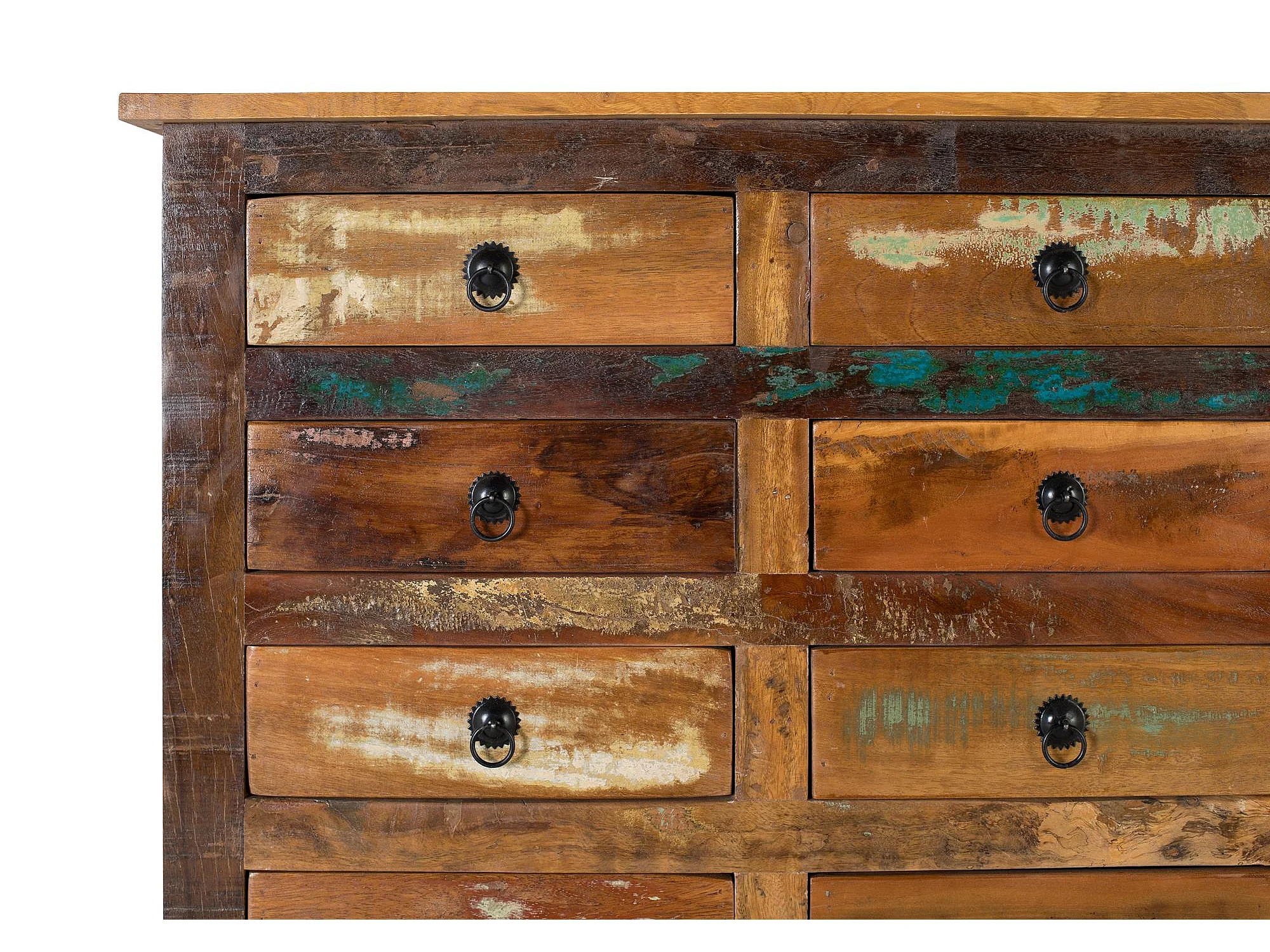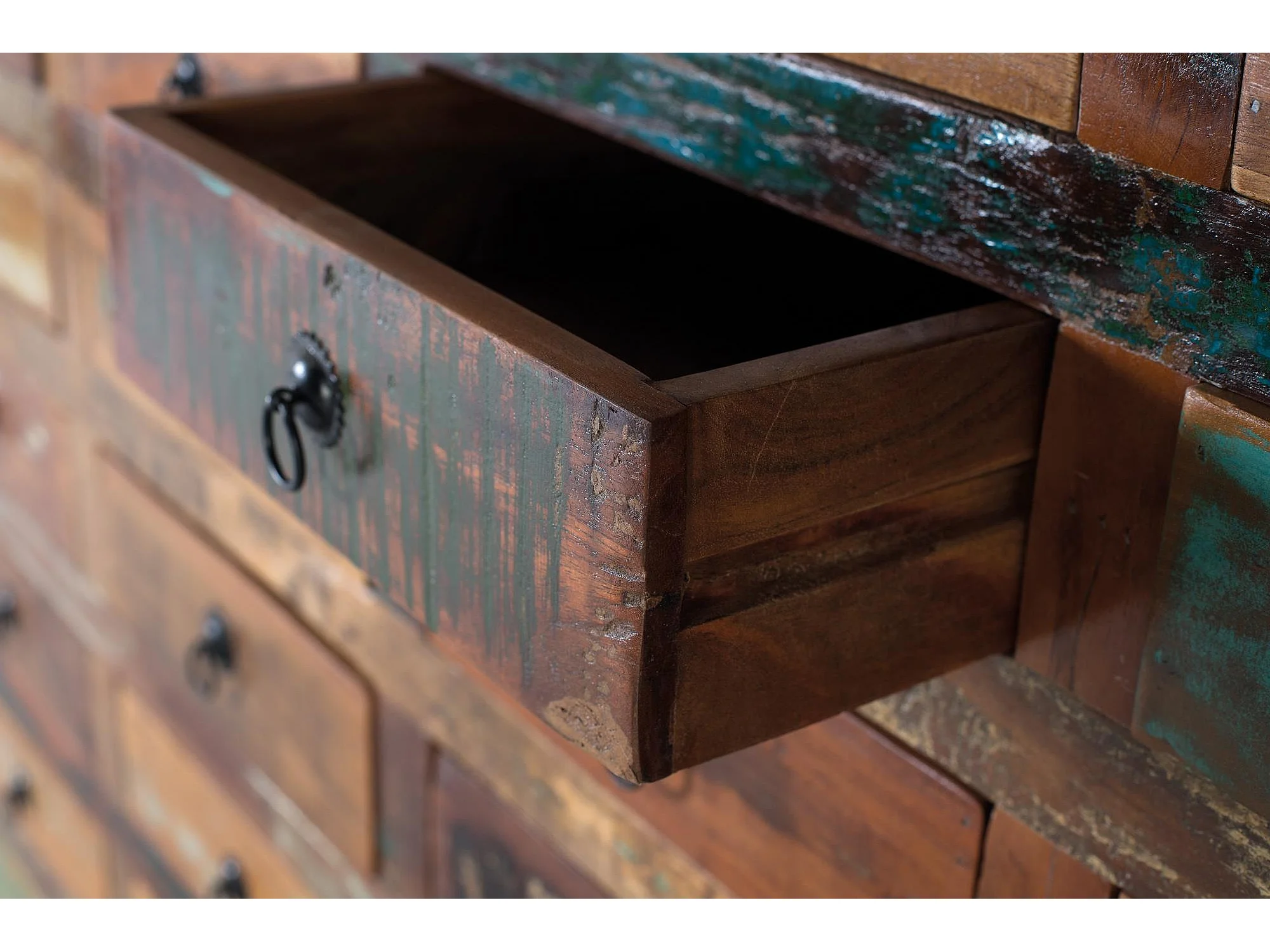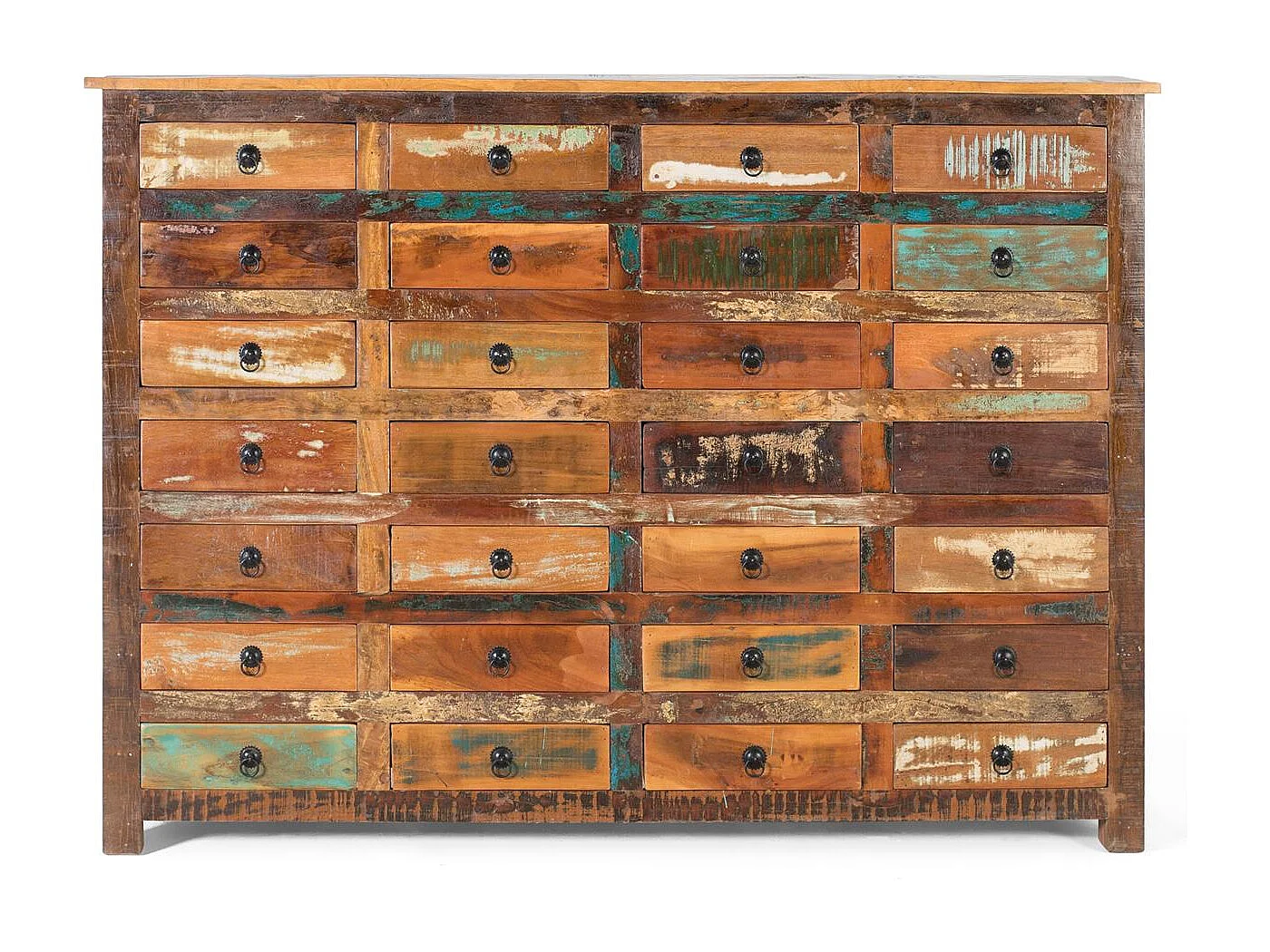 Buffet avec 28 tiroirs en bois recyclé fabriqué à la main