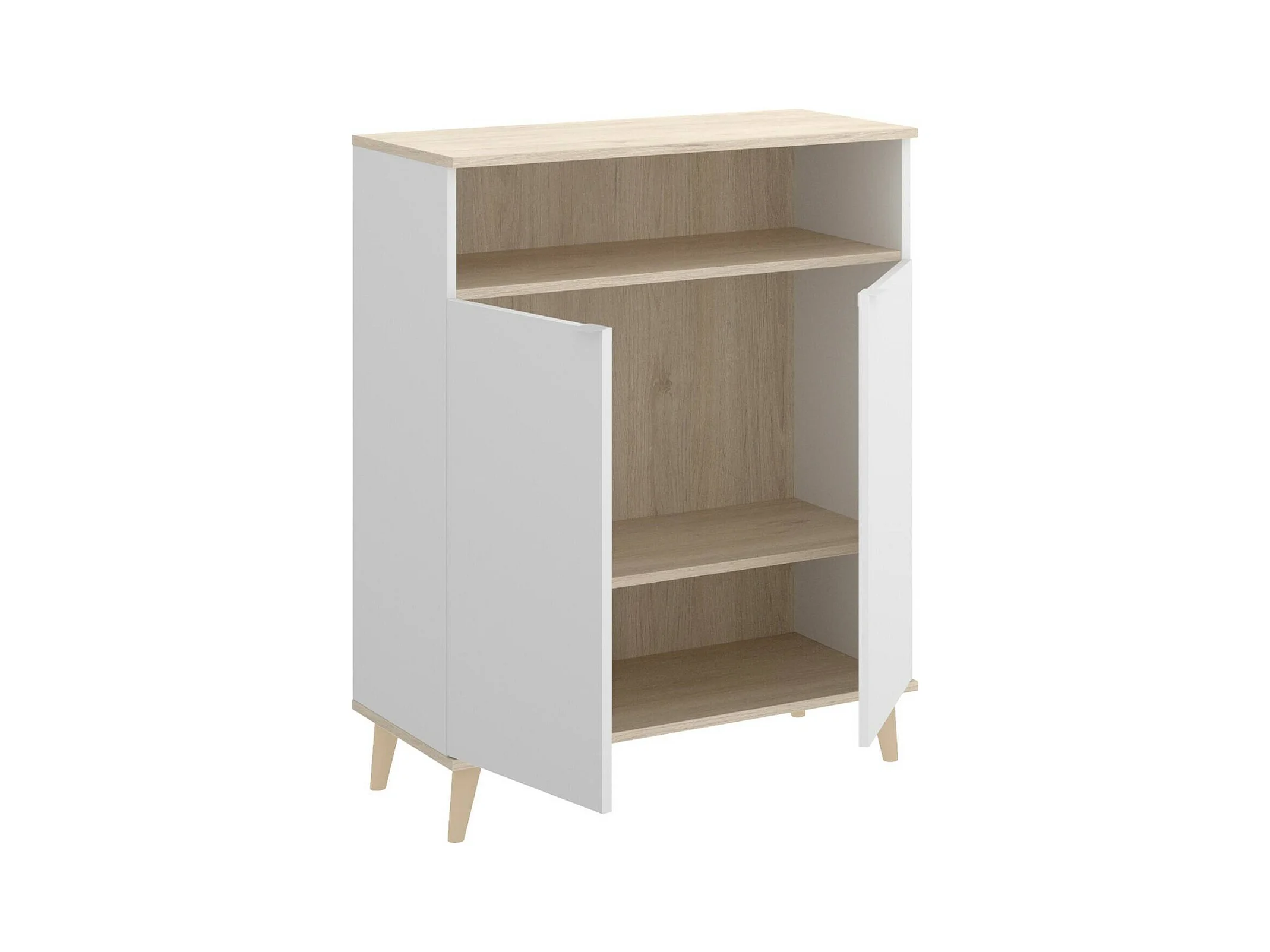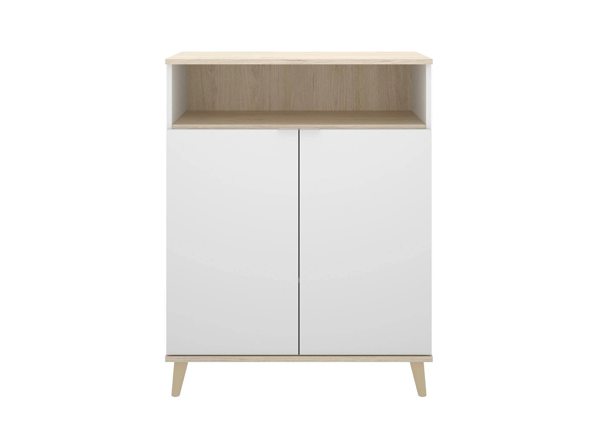 Buffet Varatella, Buffet garde-manger de salon, Buffet de salon moderne avec 2 portes, 80x40h102 cm, Blanc et Chêne