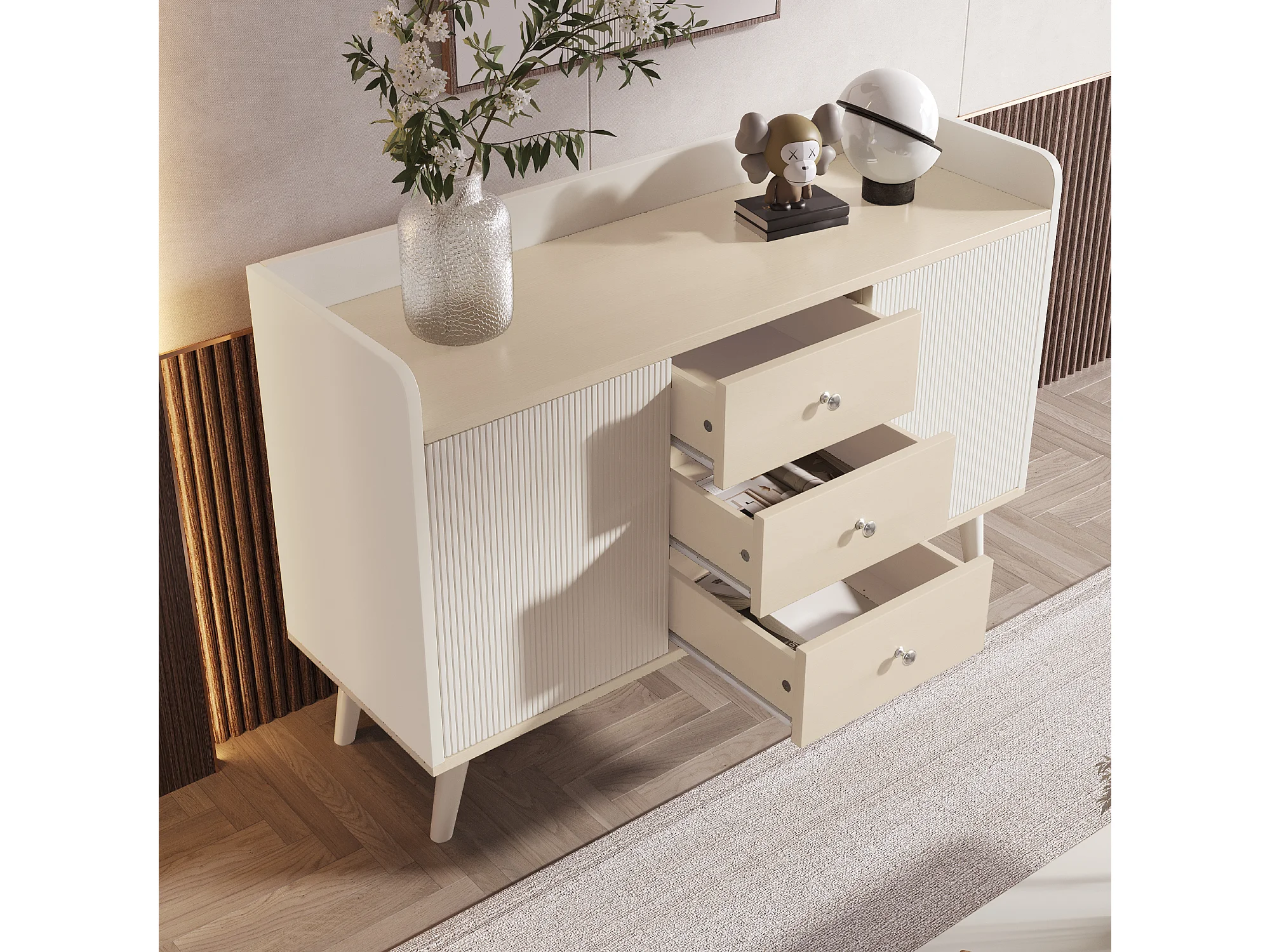 Buffet veinage raffiné pour chambre et salon - 117.5 x 40 x 80 cm - avec 3 tiroirs + 2 portes- aggloméré - blanc