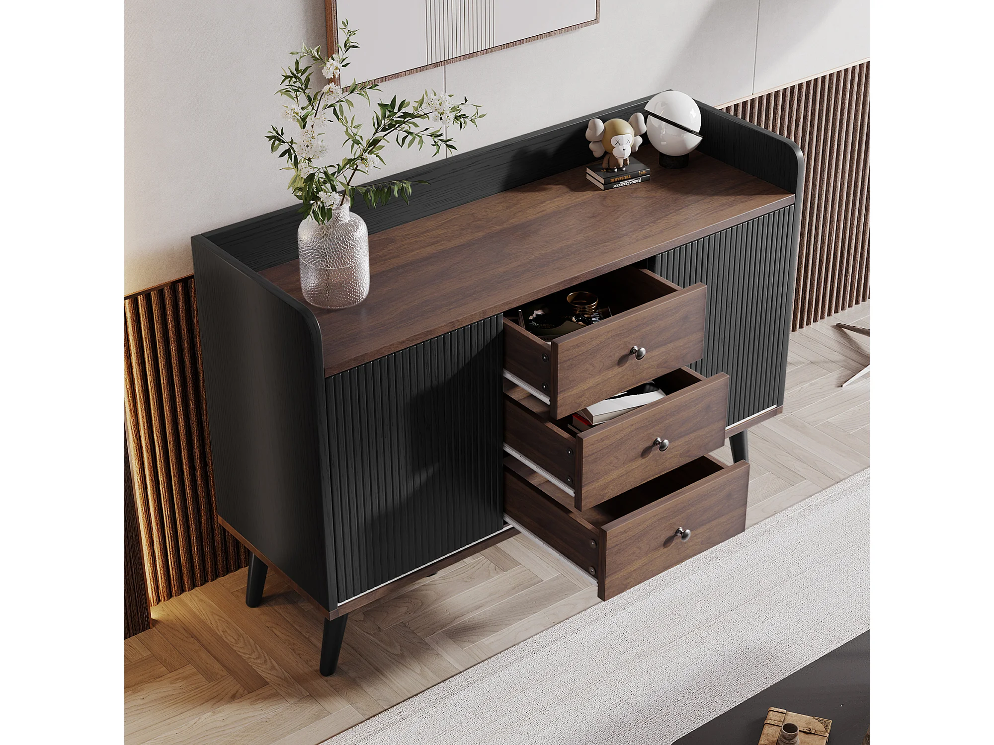 Buffet veinage raffiné pour chambre et salon - 117.5 x 40 x 80 cm - avec 3 tiroirs + 2 portes- aggloméré - noir