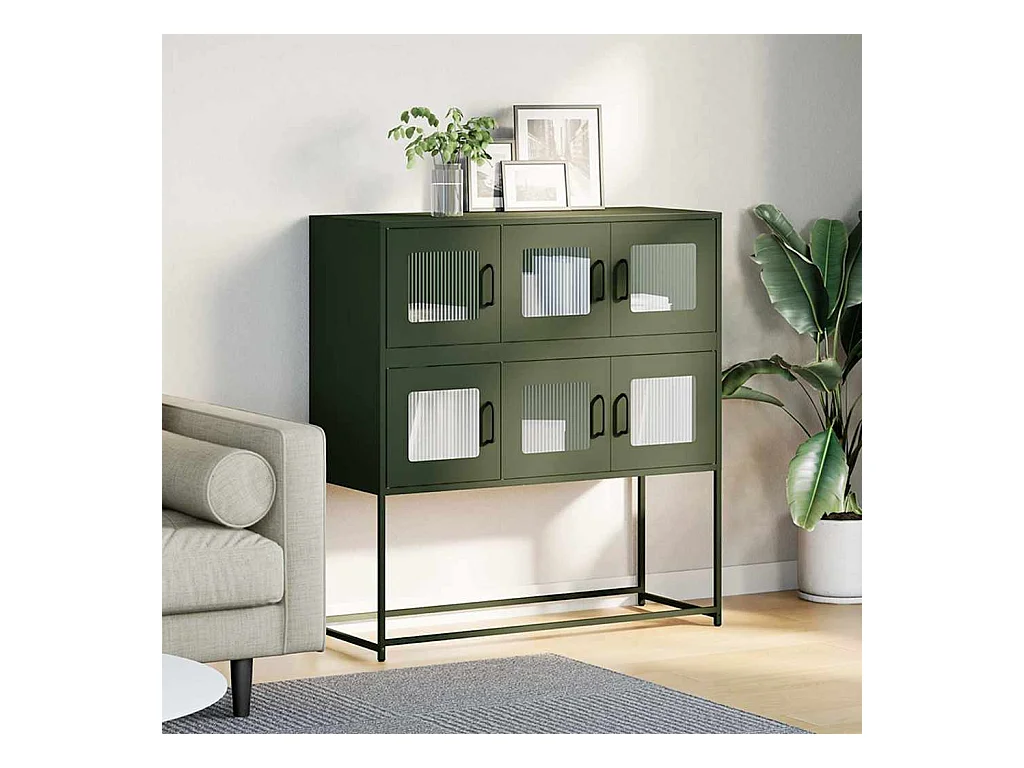 Buffet vert olive 100,5x39x107 cm acier laminé à froid