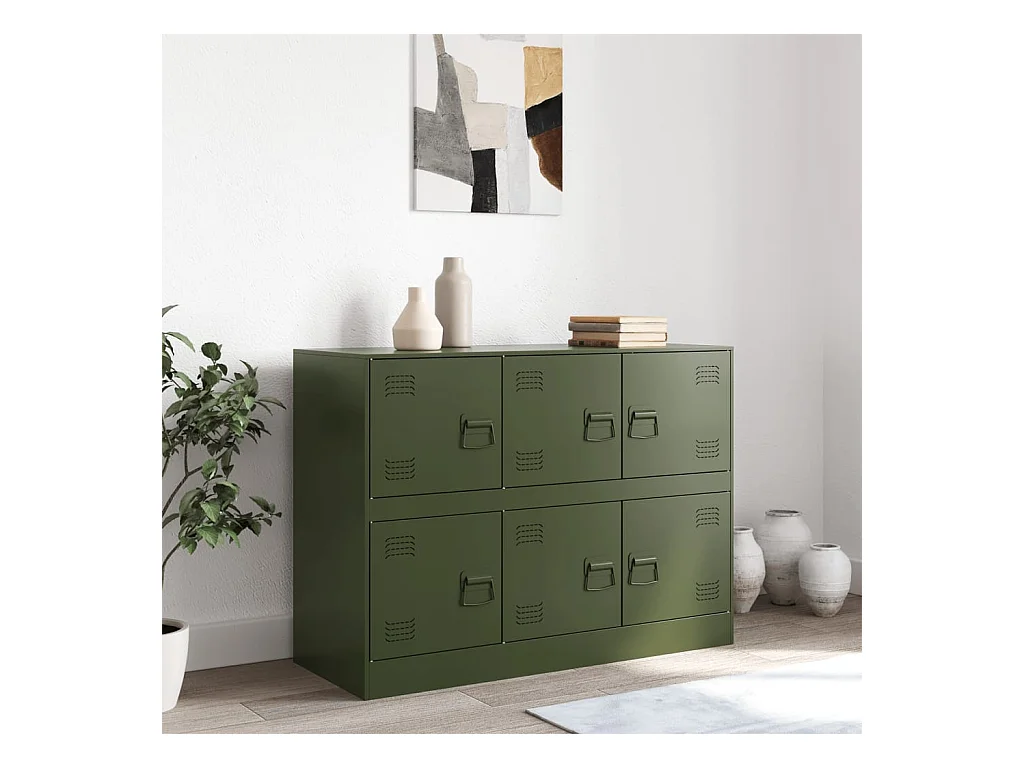 Buffet vert olive 100,5x39x107 cm acier laminé à froid