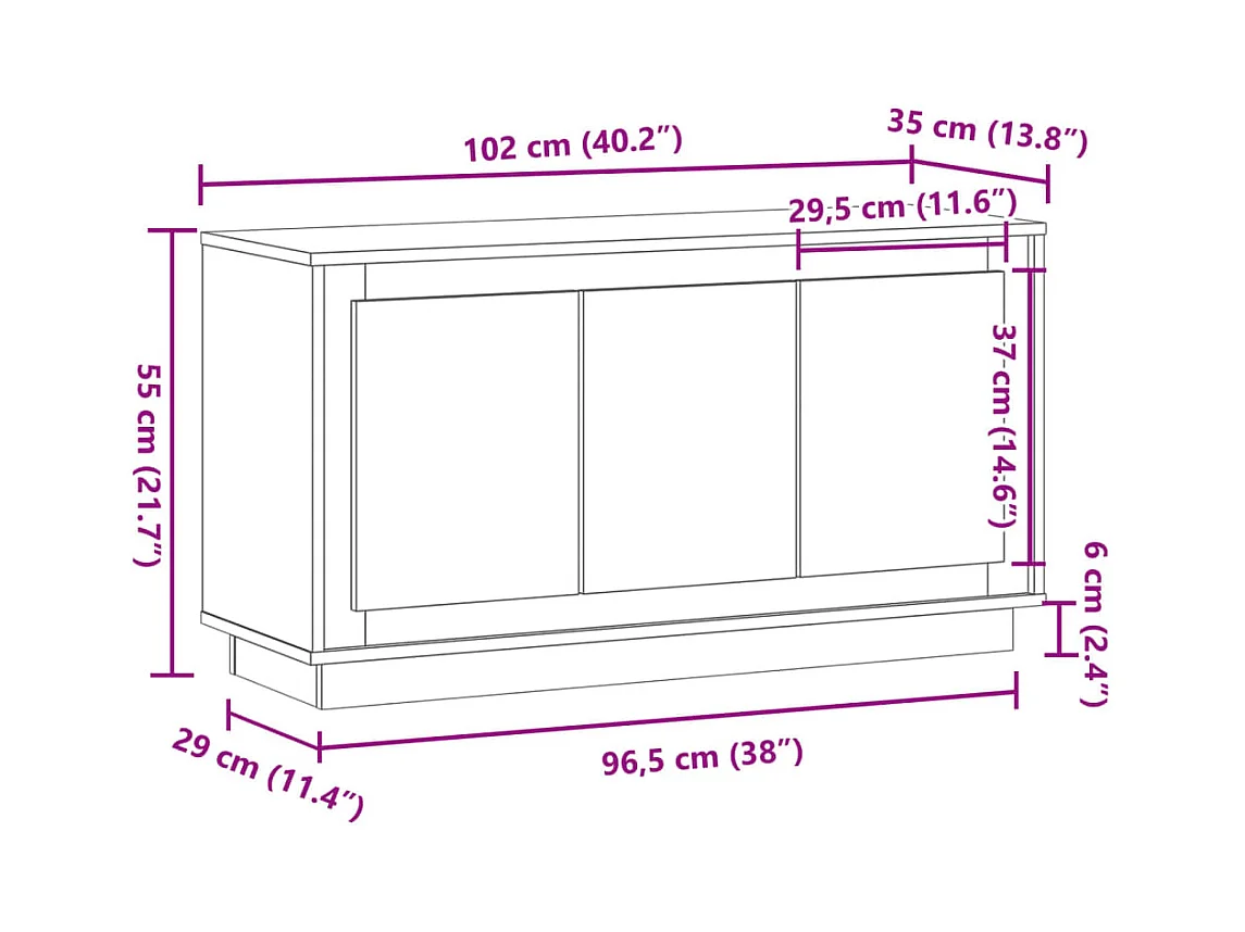Buffet chêne artisanal 102x35x60 cm bois d'ingénierie