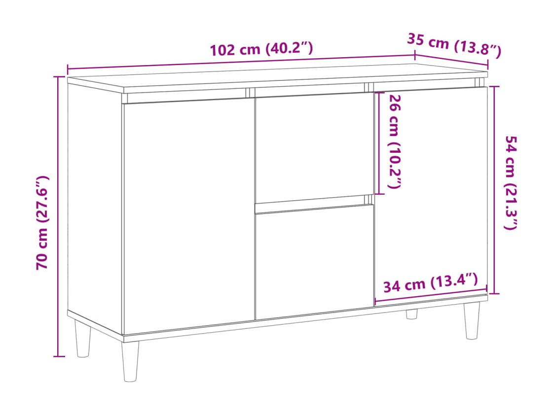 Buffet chêne sonoma 104x35x70 cm bois d'ingénierie