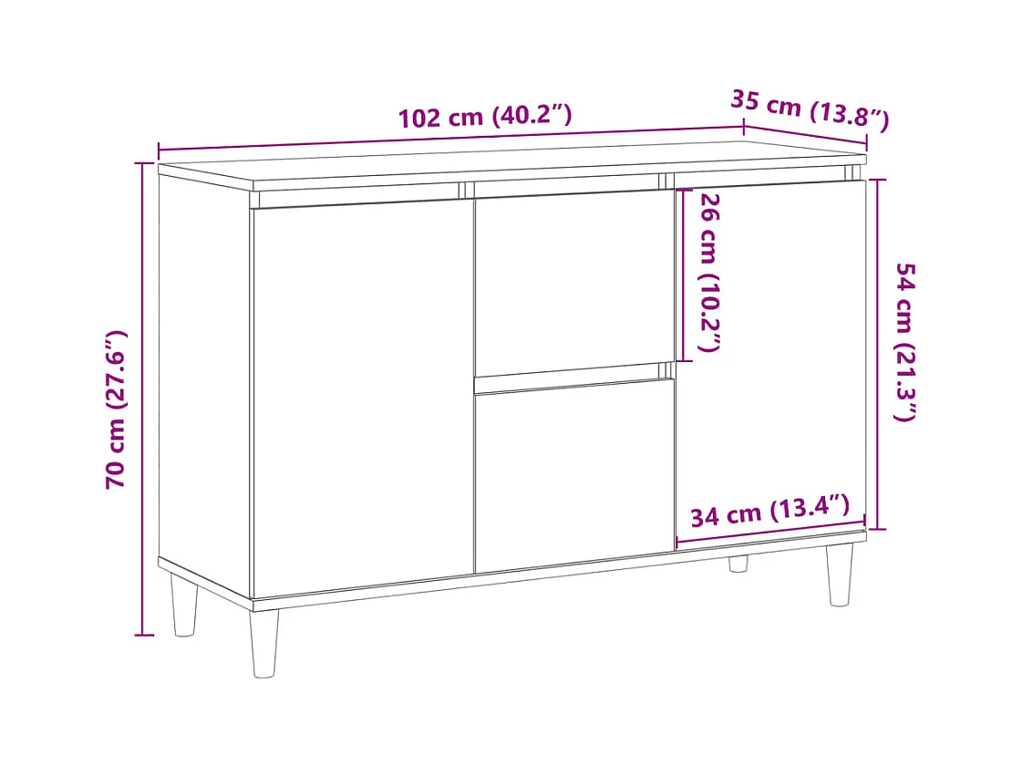 Buffet chêne sonoma 102x35x55 cm bois d'ingénierie