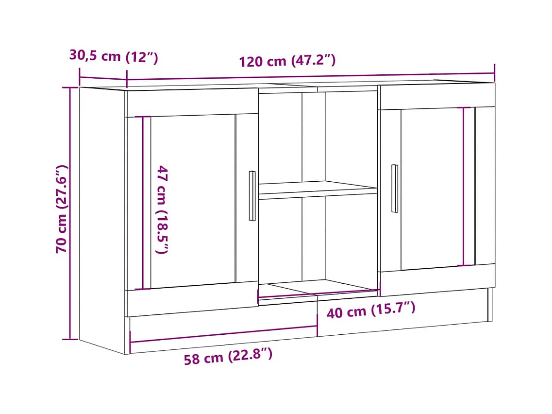 Buffet Chêne fumé 120x30,5x70 cm Bois d'ingénierie