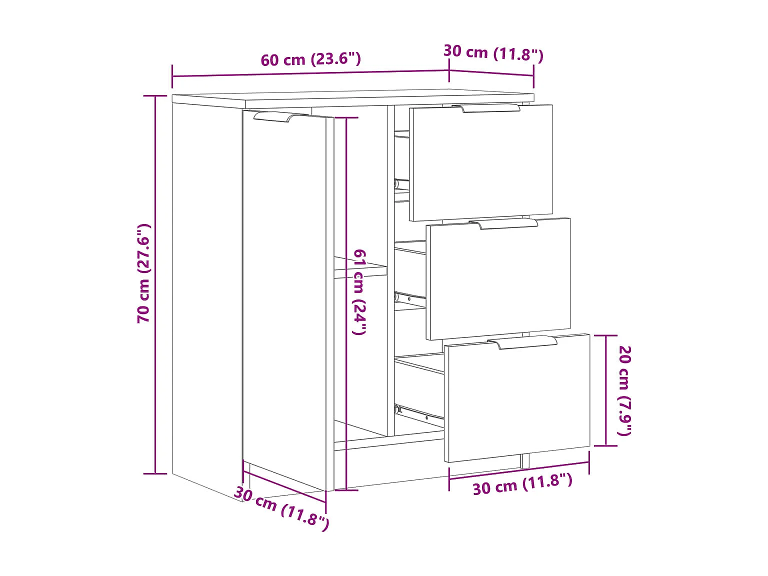 Buffet chêne artisanal 60x30x70 cm bois d'ingénierie
