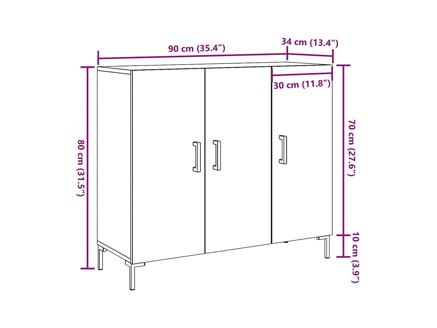 Buffet chêne artisanal 90x34x80 cm bois d'ingénierie