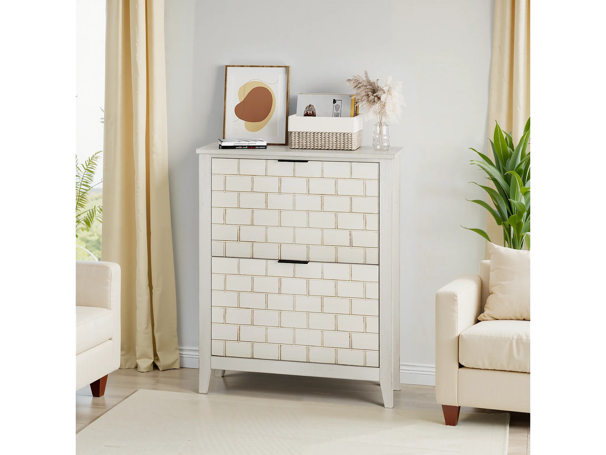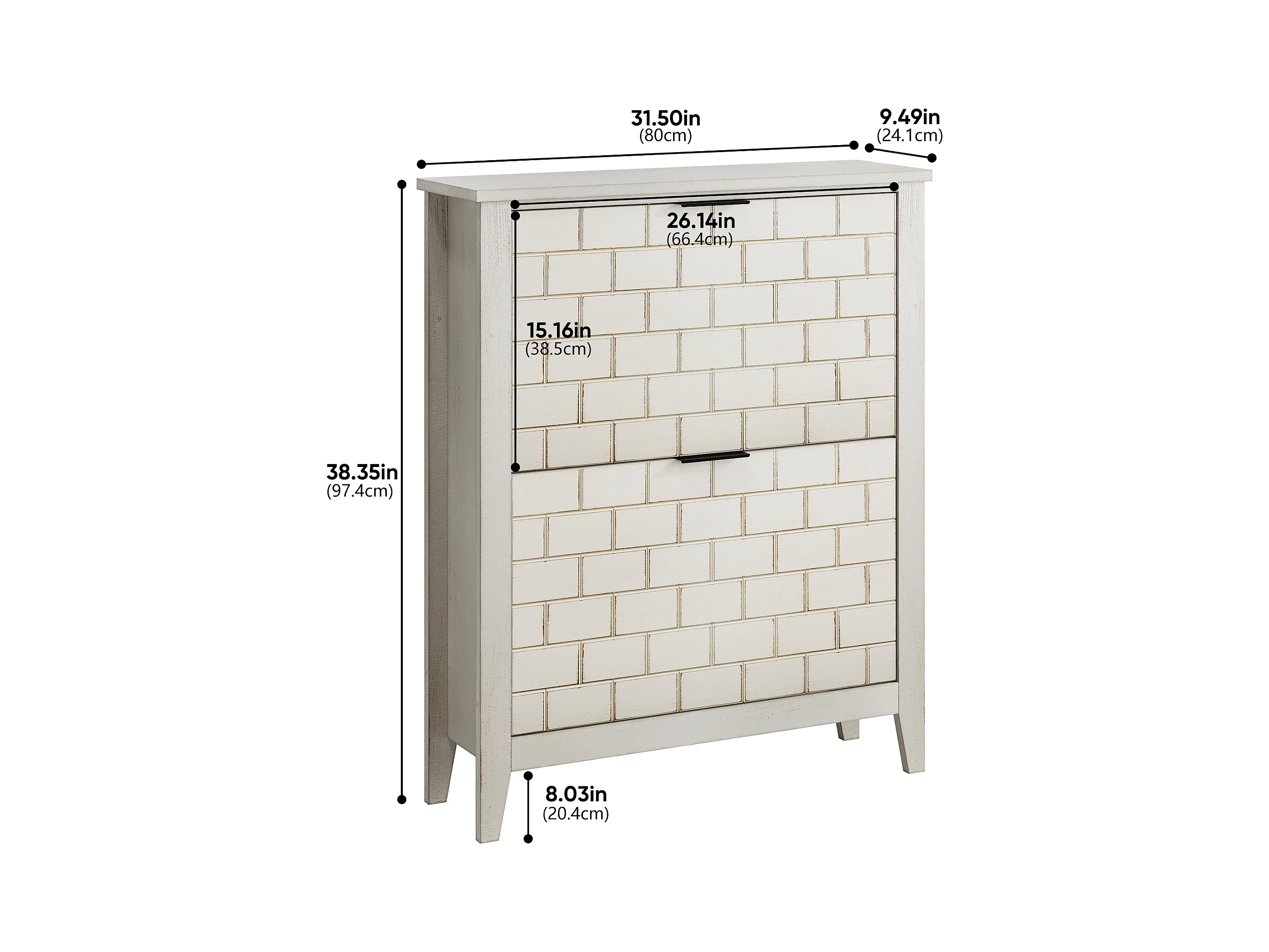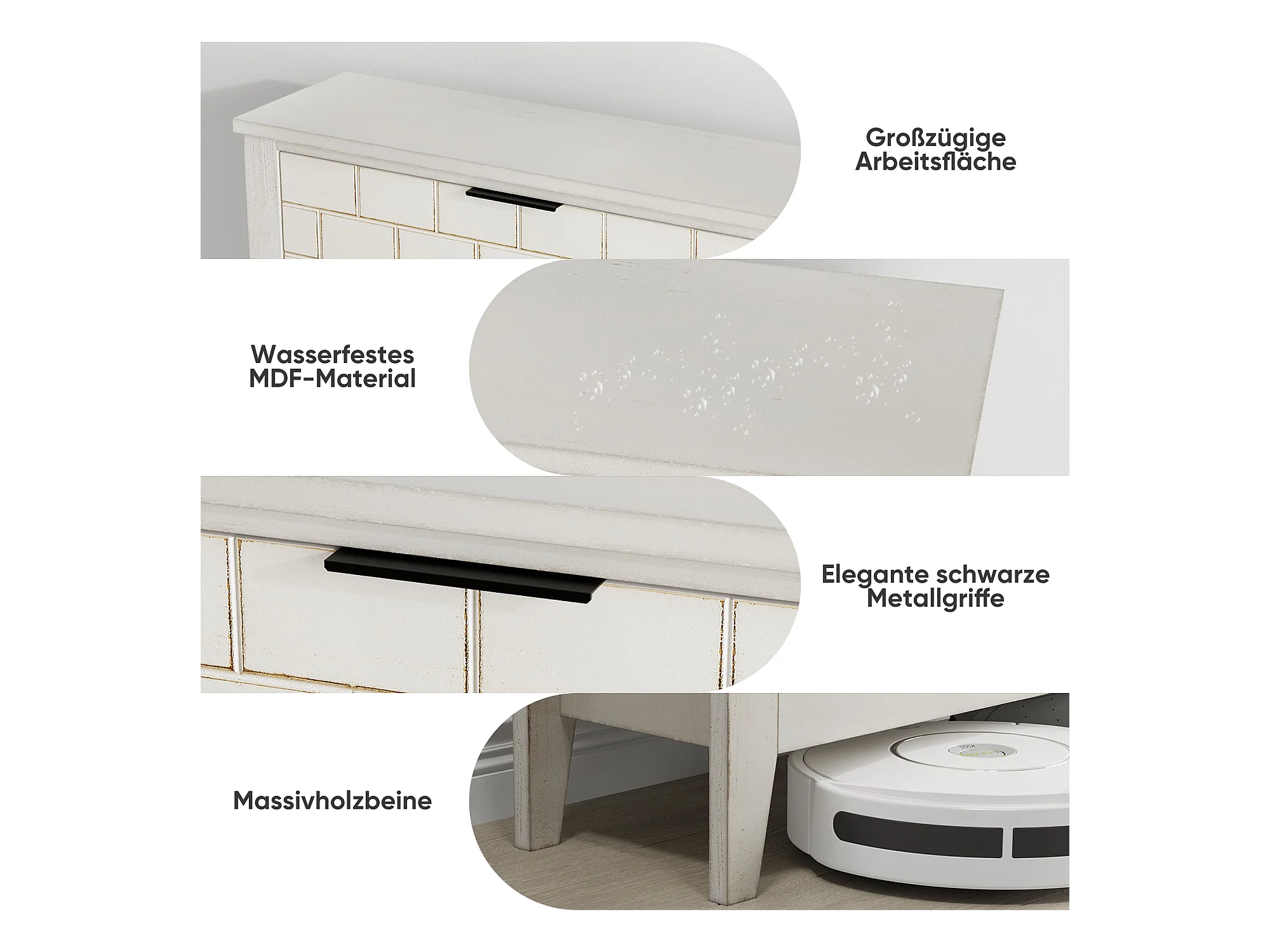Buffet vintage avec 2 tiroirs, MDF, blanc (80x24x97.5 cm)