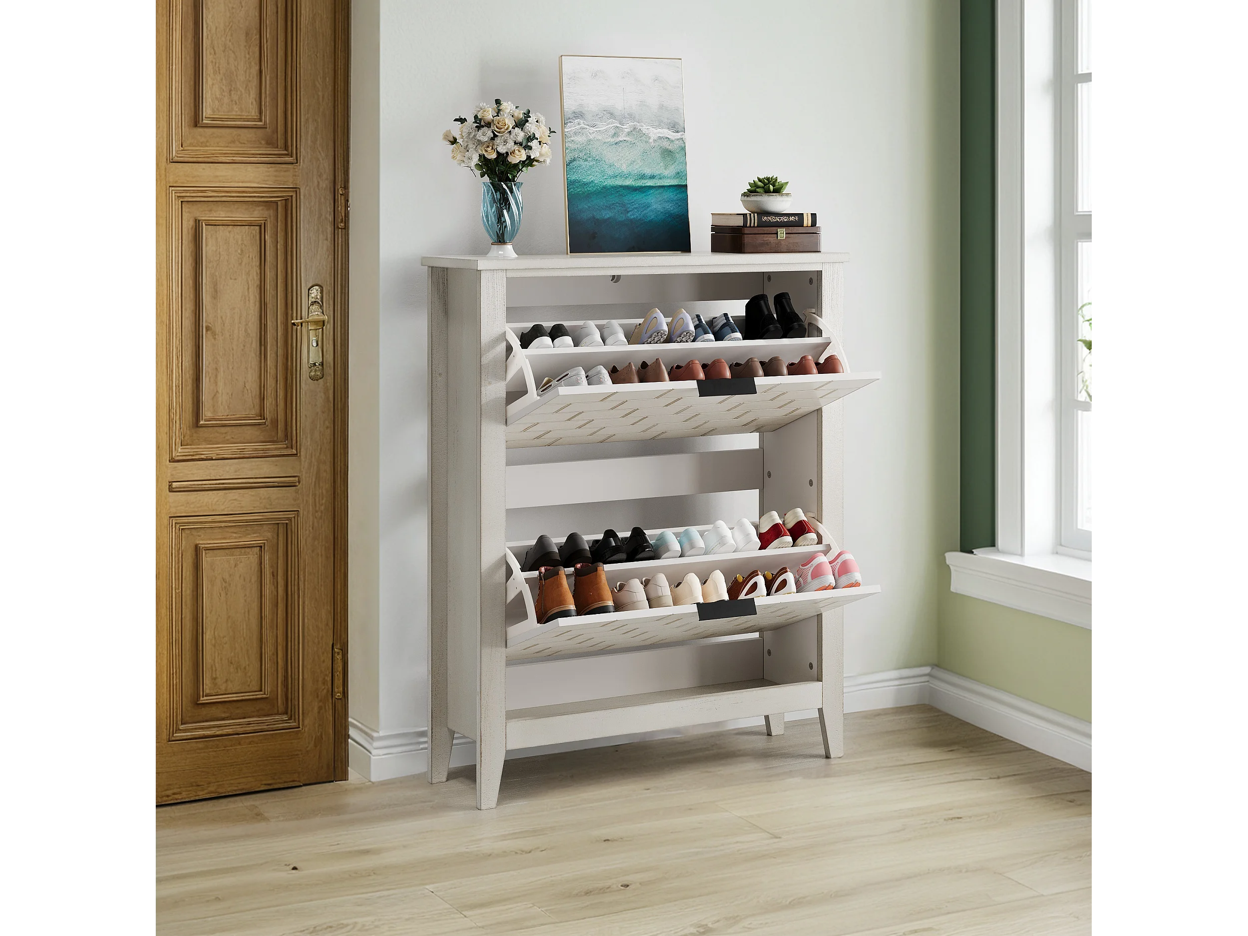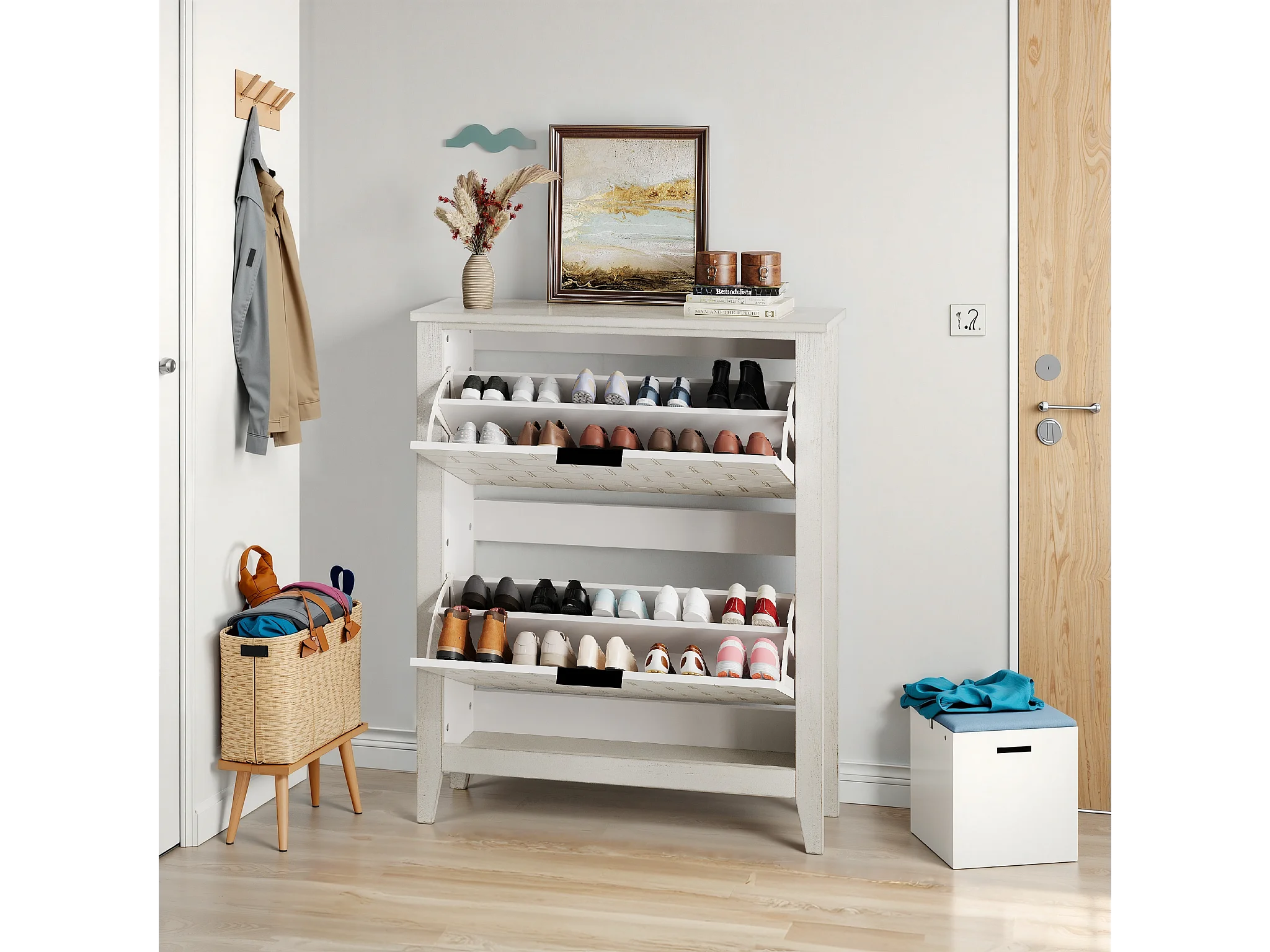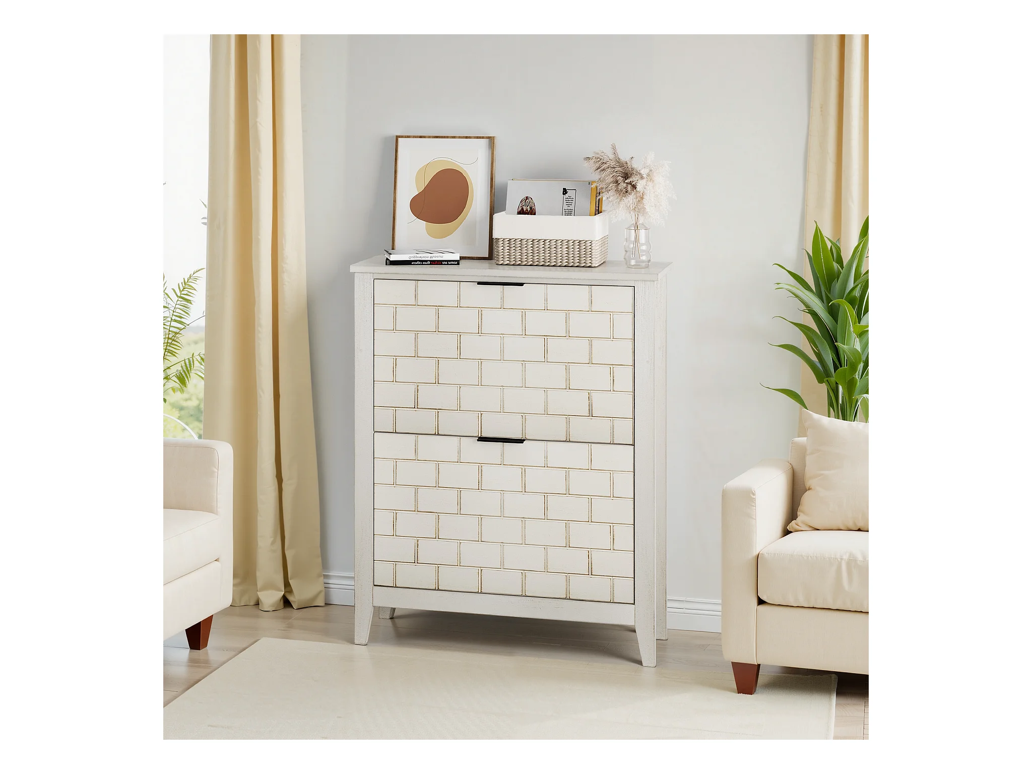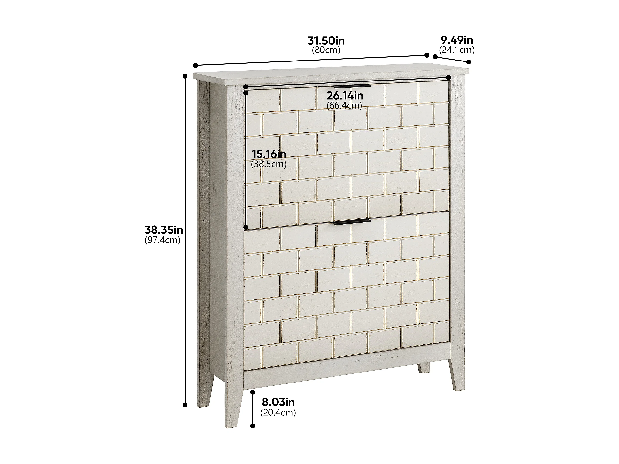 Buffet vintage avec 2 tiroirs, MDF, blanc (80x24x97.5 cm)