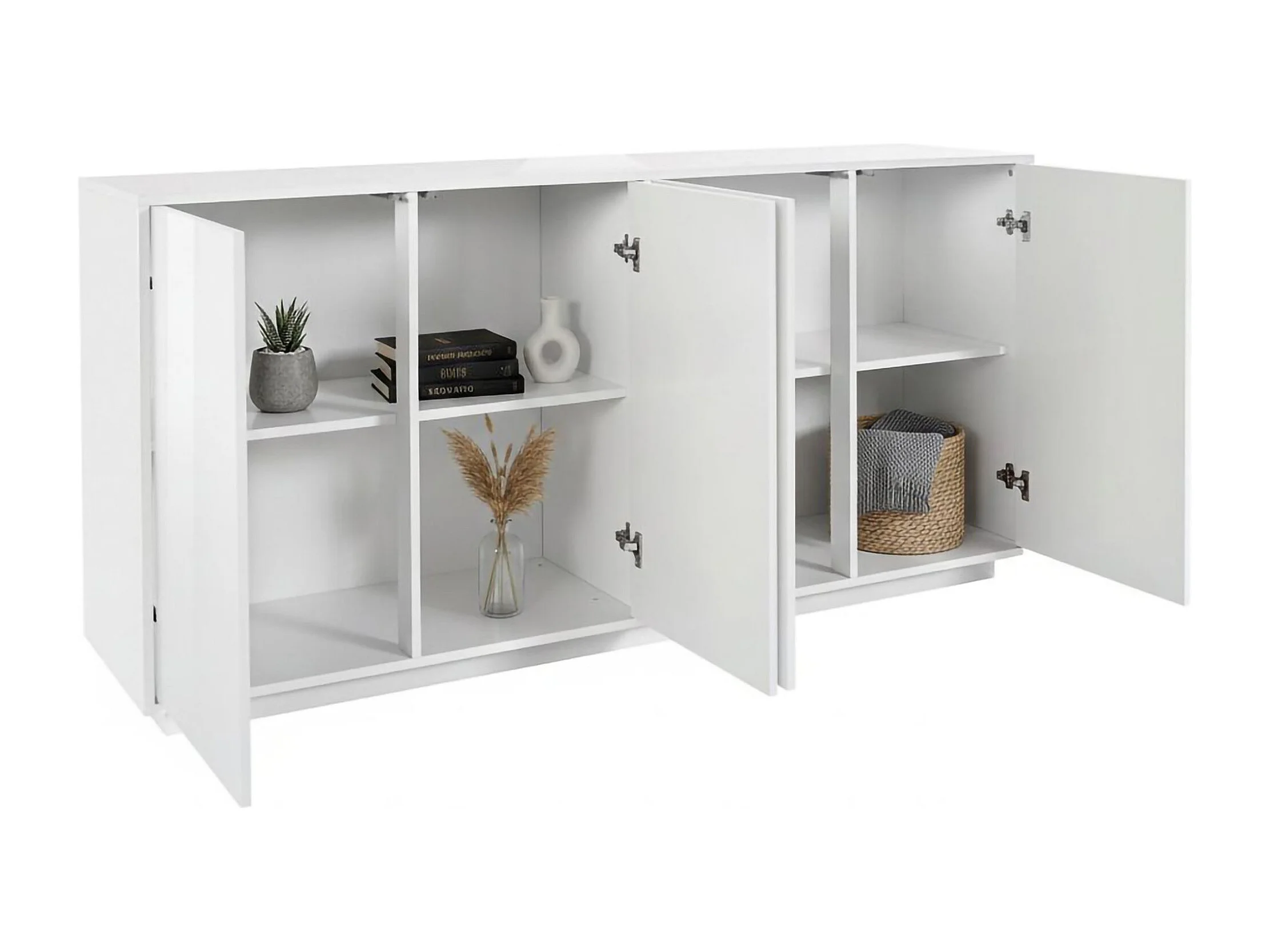 Buffet Virgilio, Buffet de cuisine 4 portes, Buffet de salon, 100% Made in Italy, 180x41h86 cm, Blanc brillant