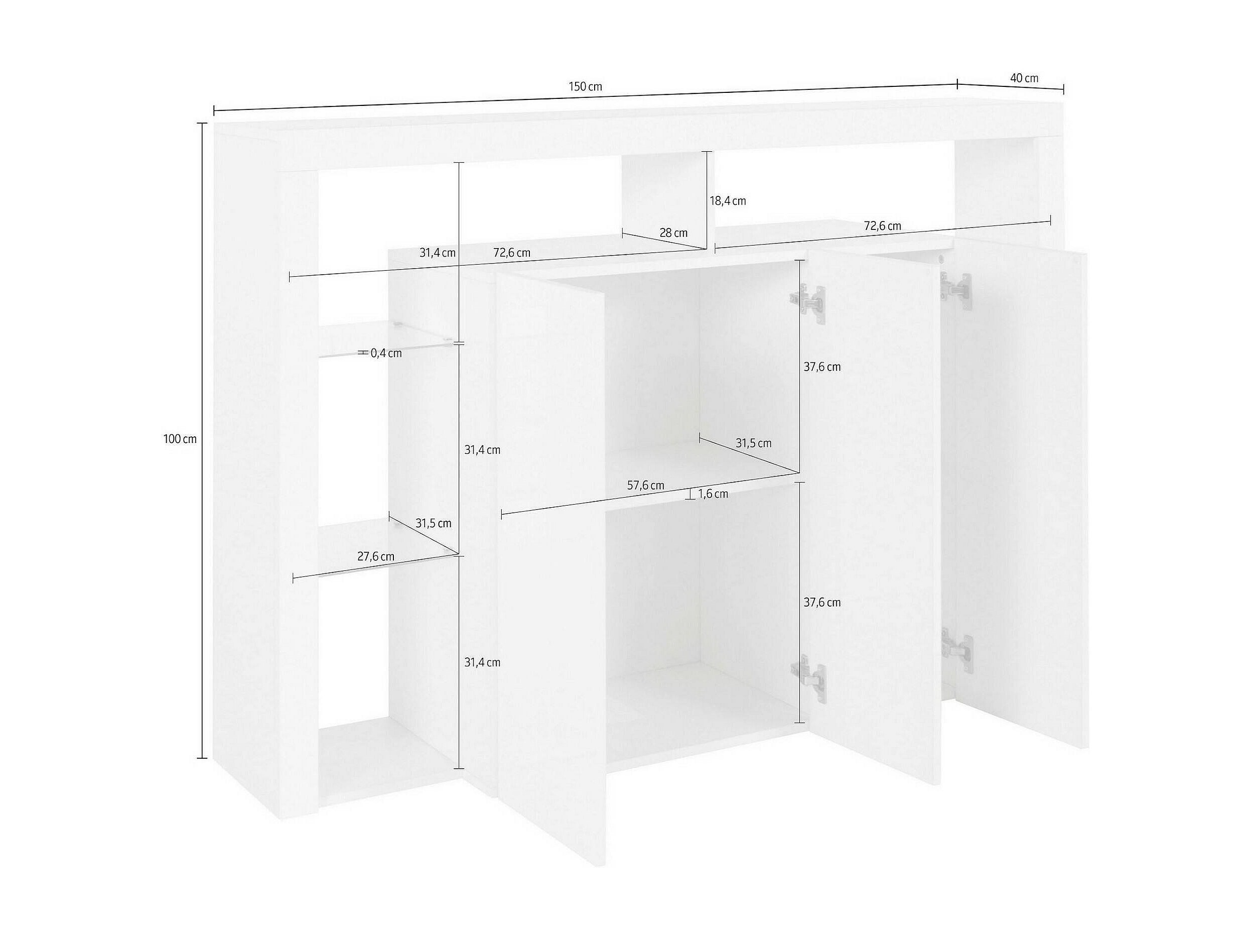 Buffet Weddell, Buffet du salon, Commode de salon, Garde-manger de cuisine, 154x40h72 cm, Anthracite et Blanc