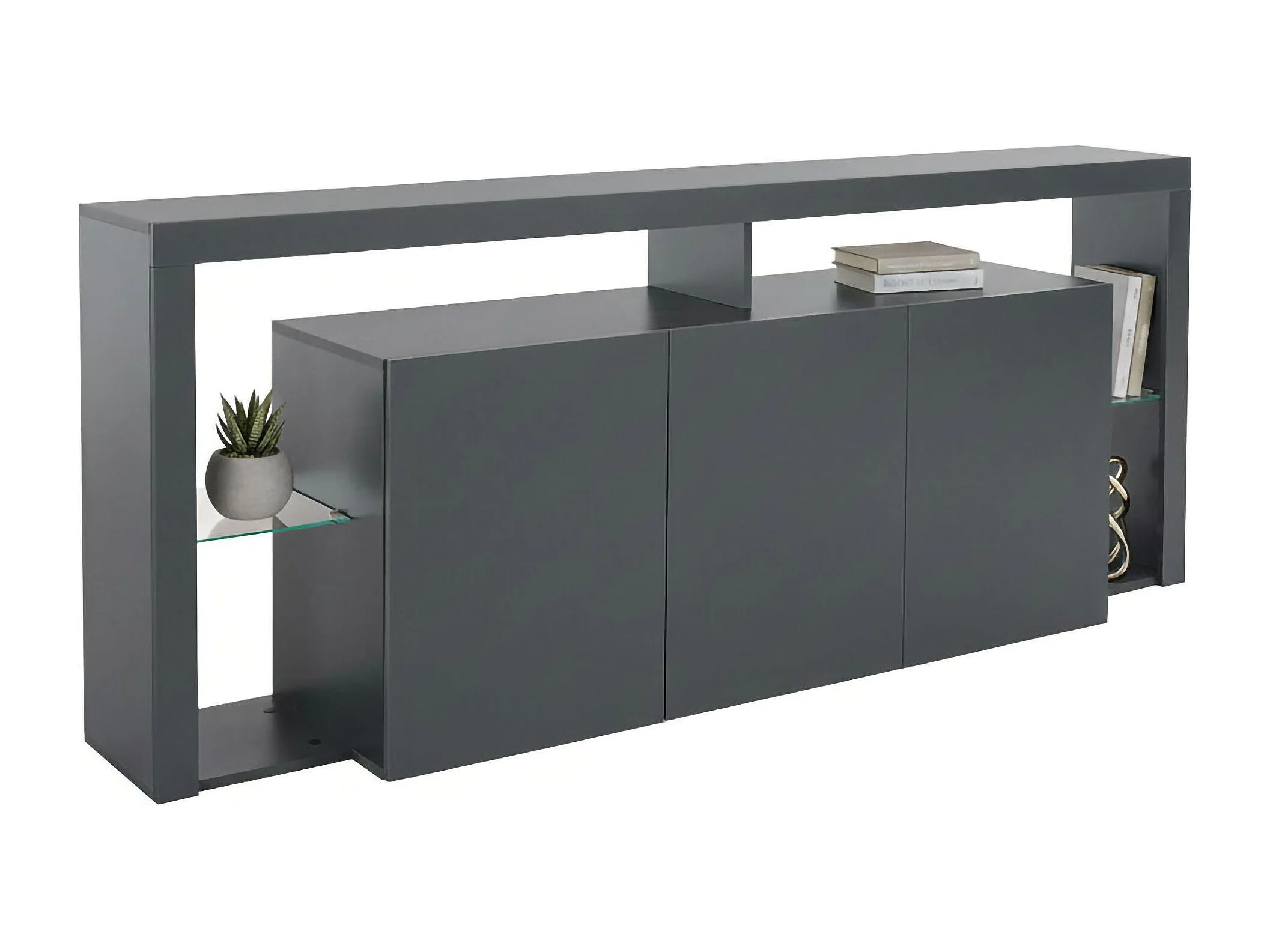 Buffet Willer, Buffet de salon 3 portes, Buffet de salon, Buffet moderne, 100% Made in Italy, 200x40h80 cm, Anthracite
