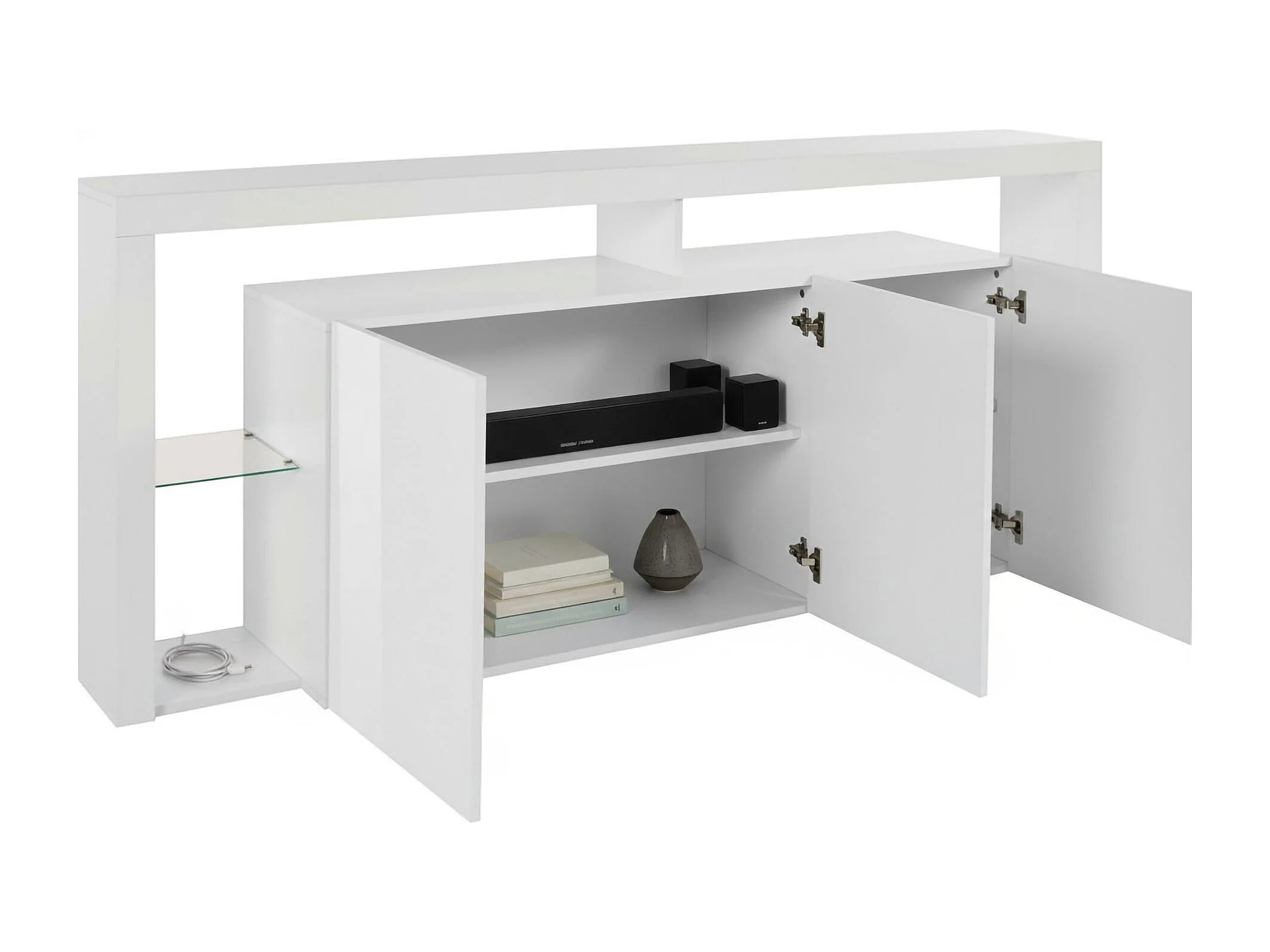 Buffet Willer, Buffet de salon 3 portes, Buffet de salon, Buffet moderne, 100% Made in Italy, 200x40h80 cm, Blanc brillant