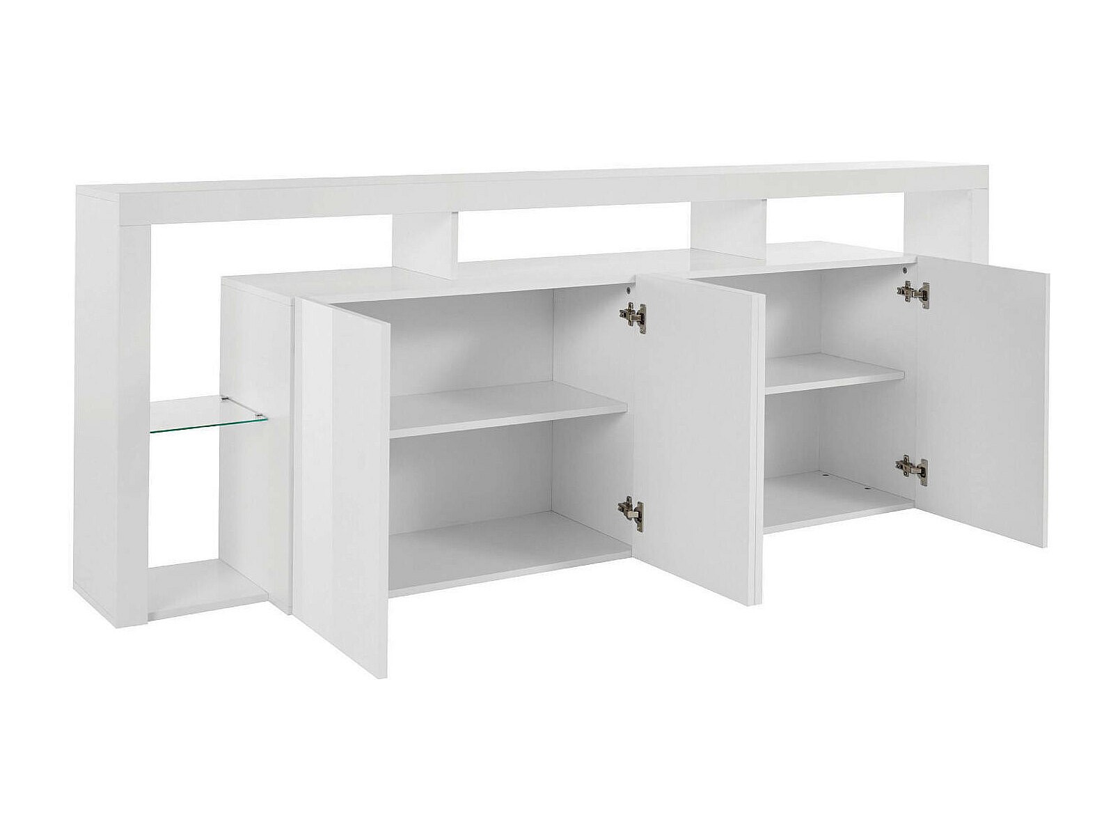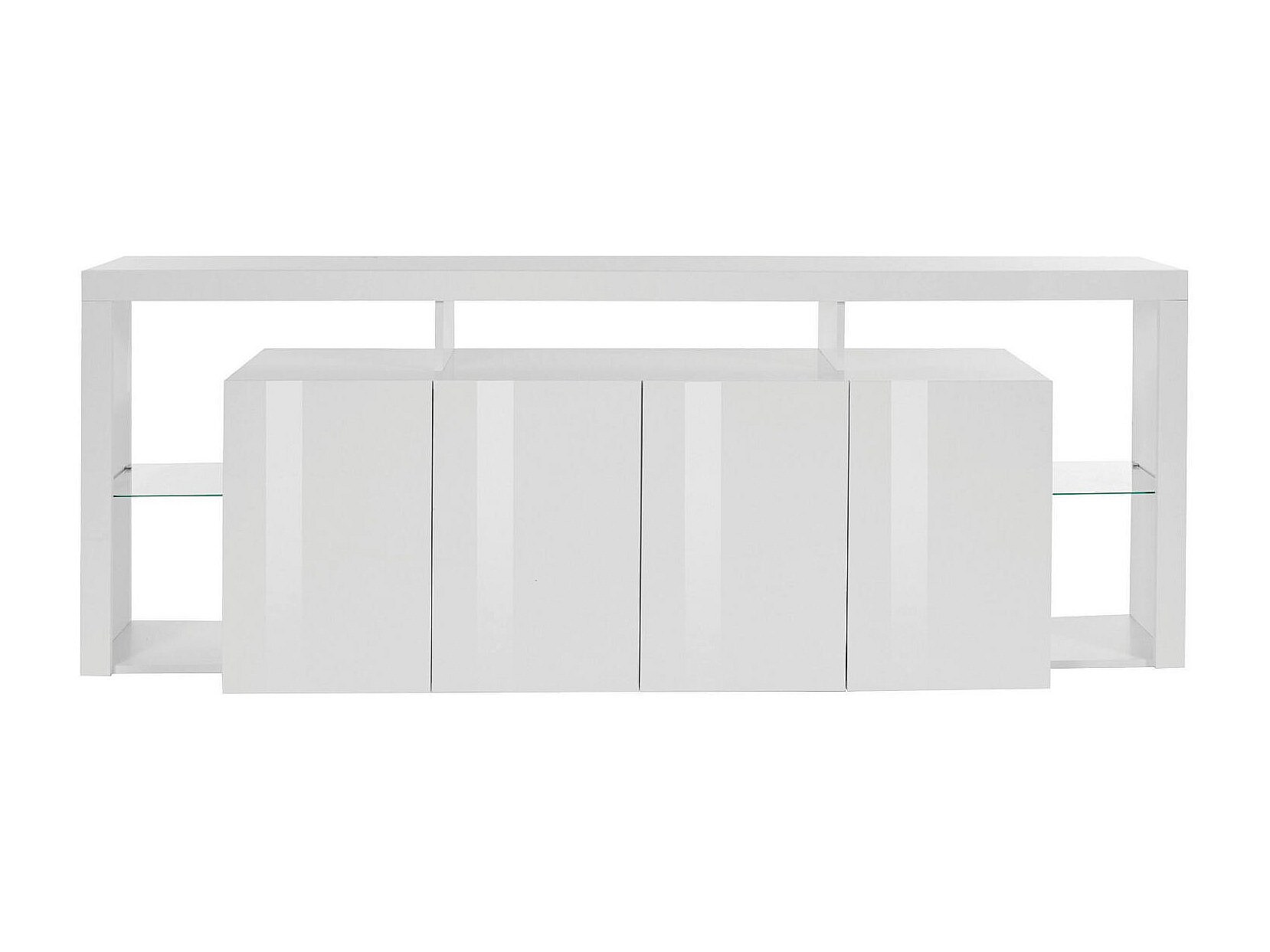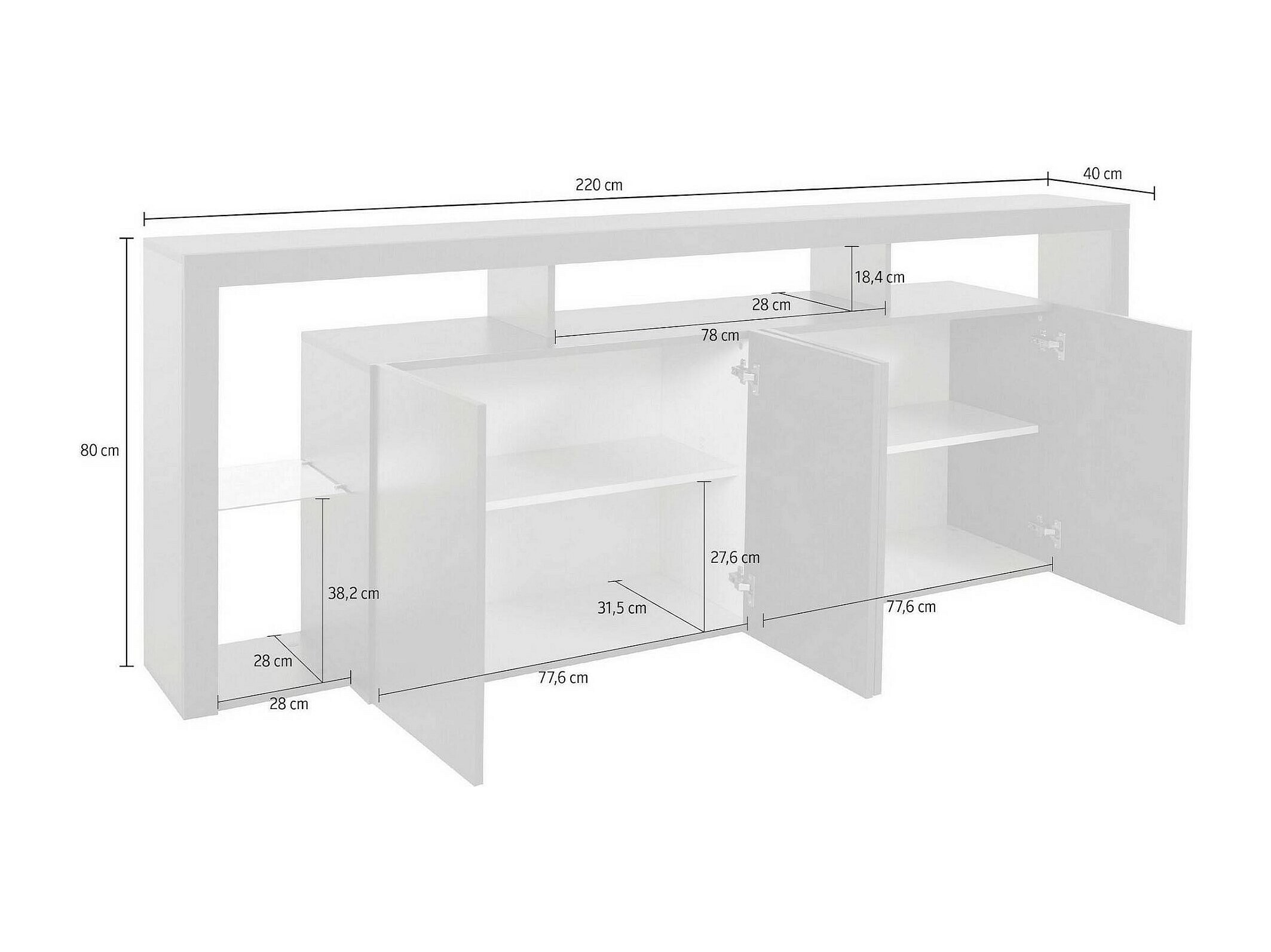 BUFFET - Buffet de salon avec 4 portes, Buffet de salon, Buffet moderne, 100% Made in Italy, 220x40h80 cm, Blanc brillant.