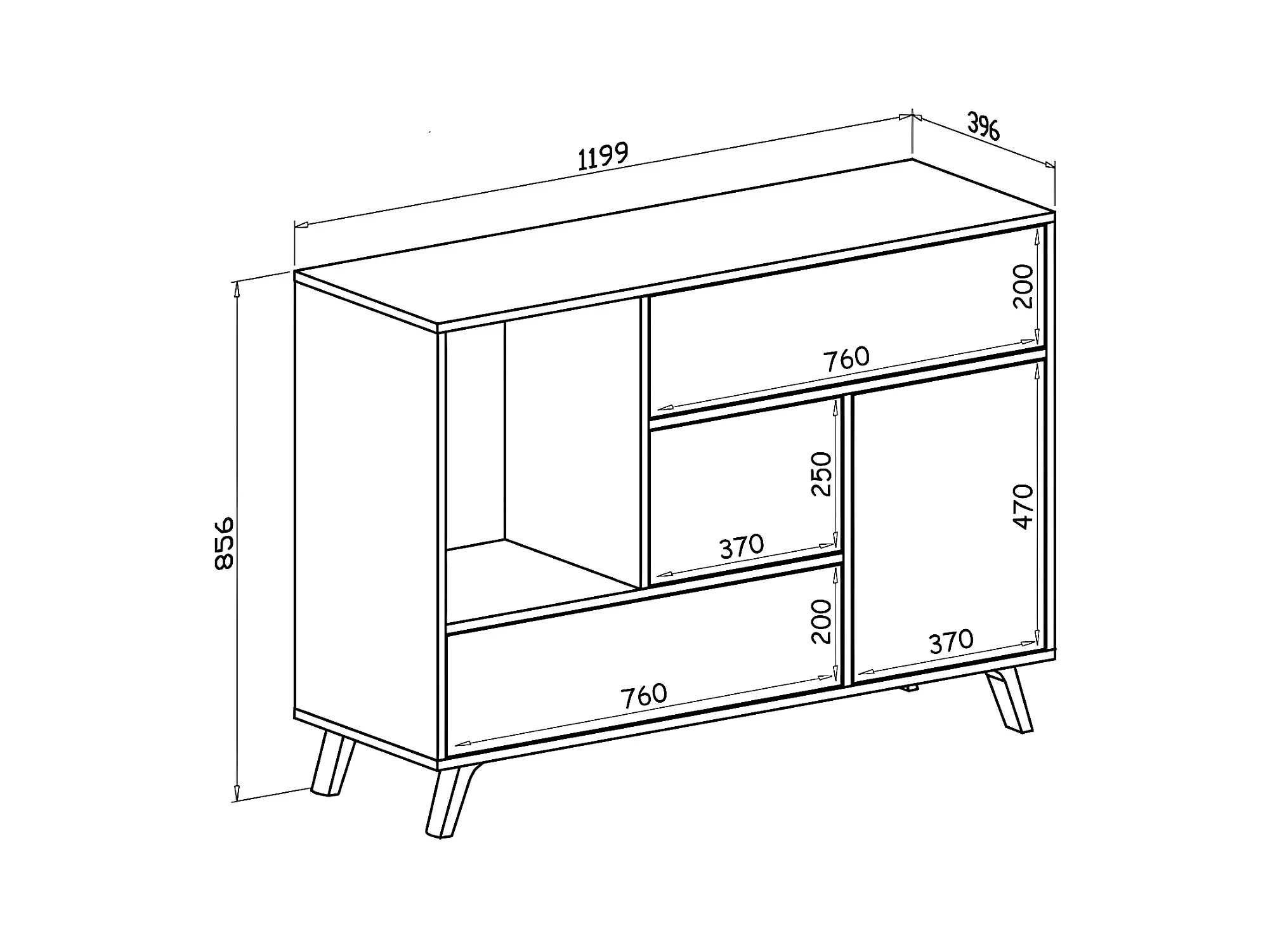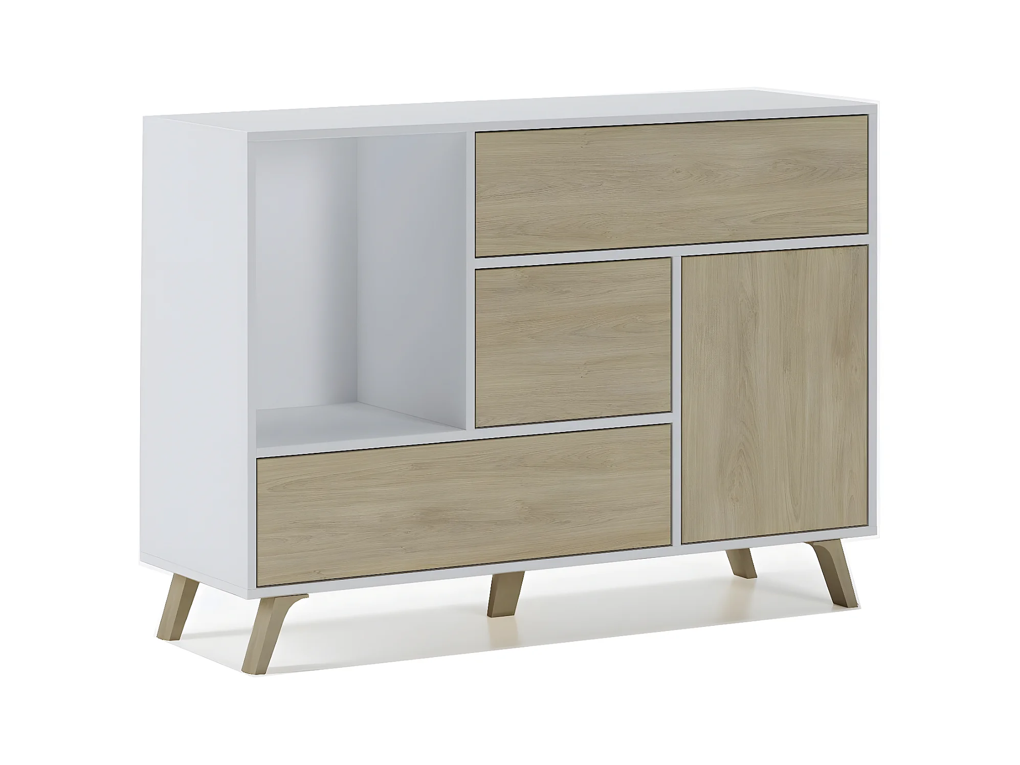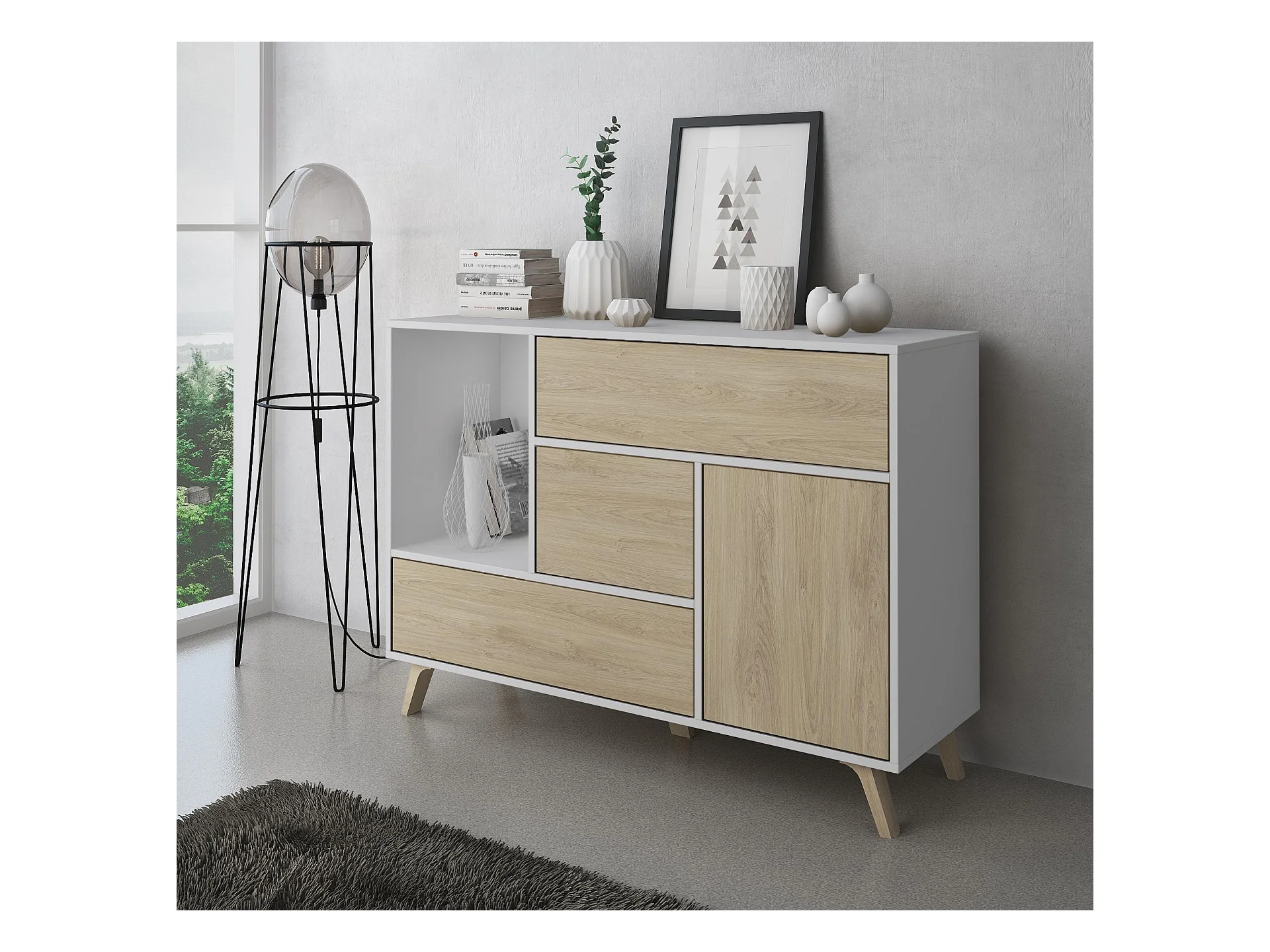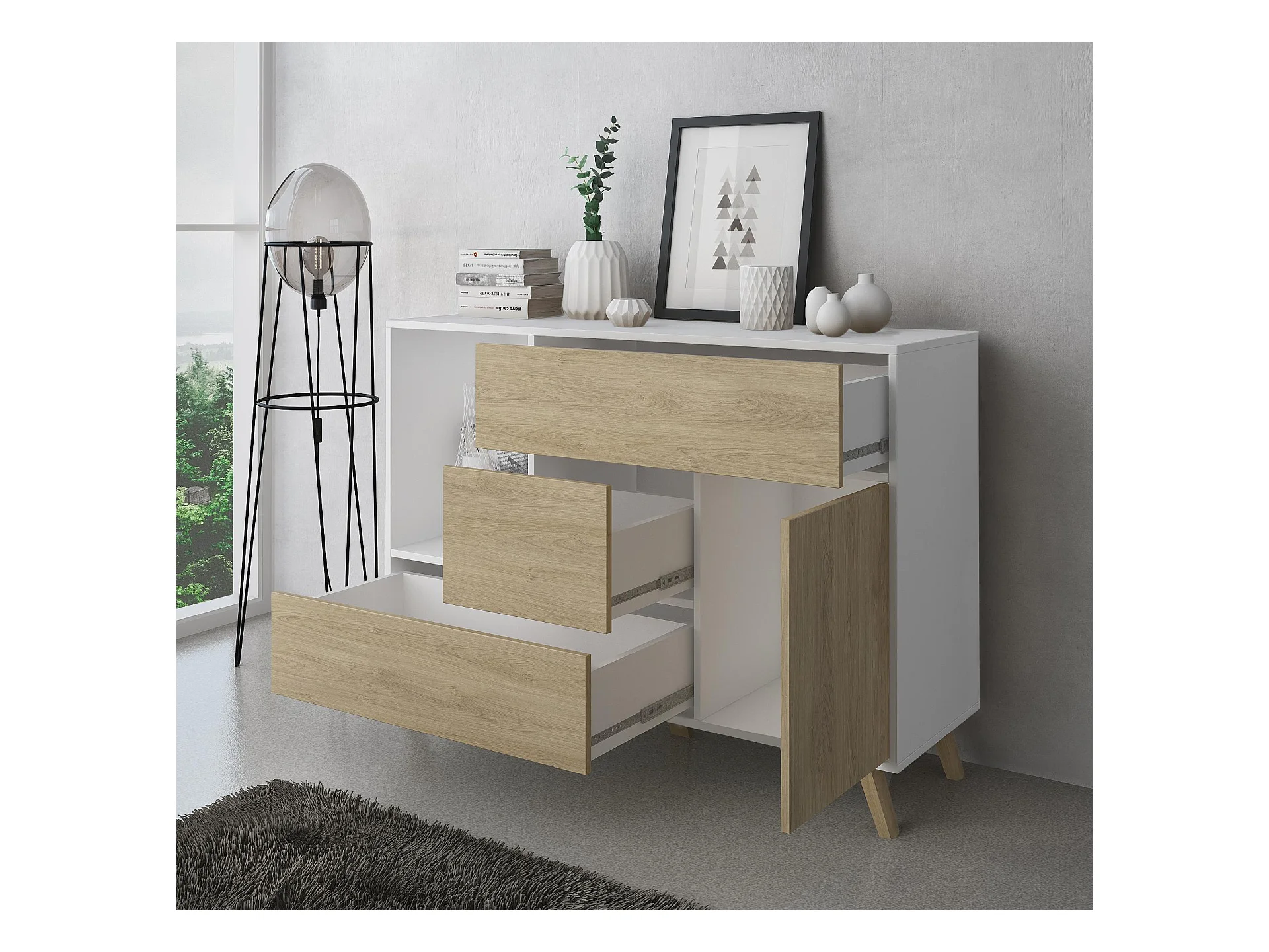 Buffet de salle à manger WIND 1 porte, 3 tiroirs, couleur Blanc/chêne